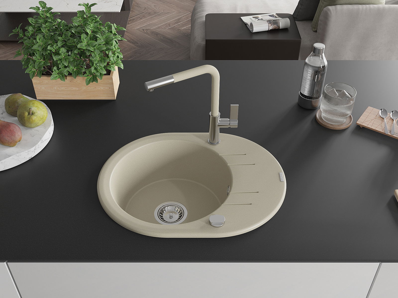 Мивката е направена от висококачествен гранит. Това е елегантно и най -вече практично допълнение към всяка кухня, независимо от нейния стил. Висококачествената и гранитна издръжливост осигуряват много години употреба.