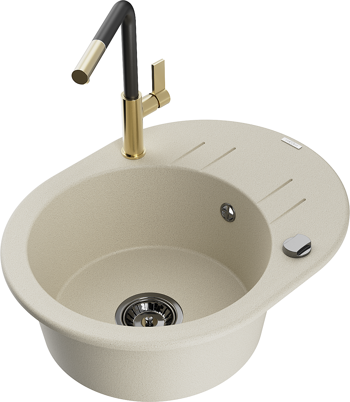 Mexen Kevin гранитна мивка с едно корито, с източване и кухненски смесител Flora, бежов - 6517-69-670401-57-B