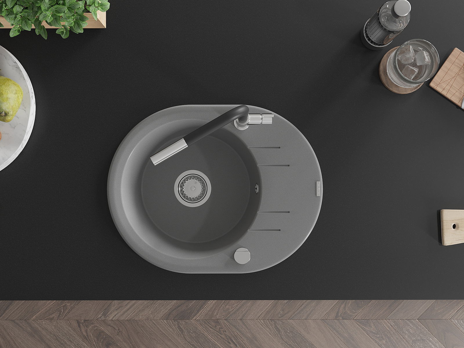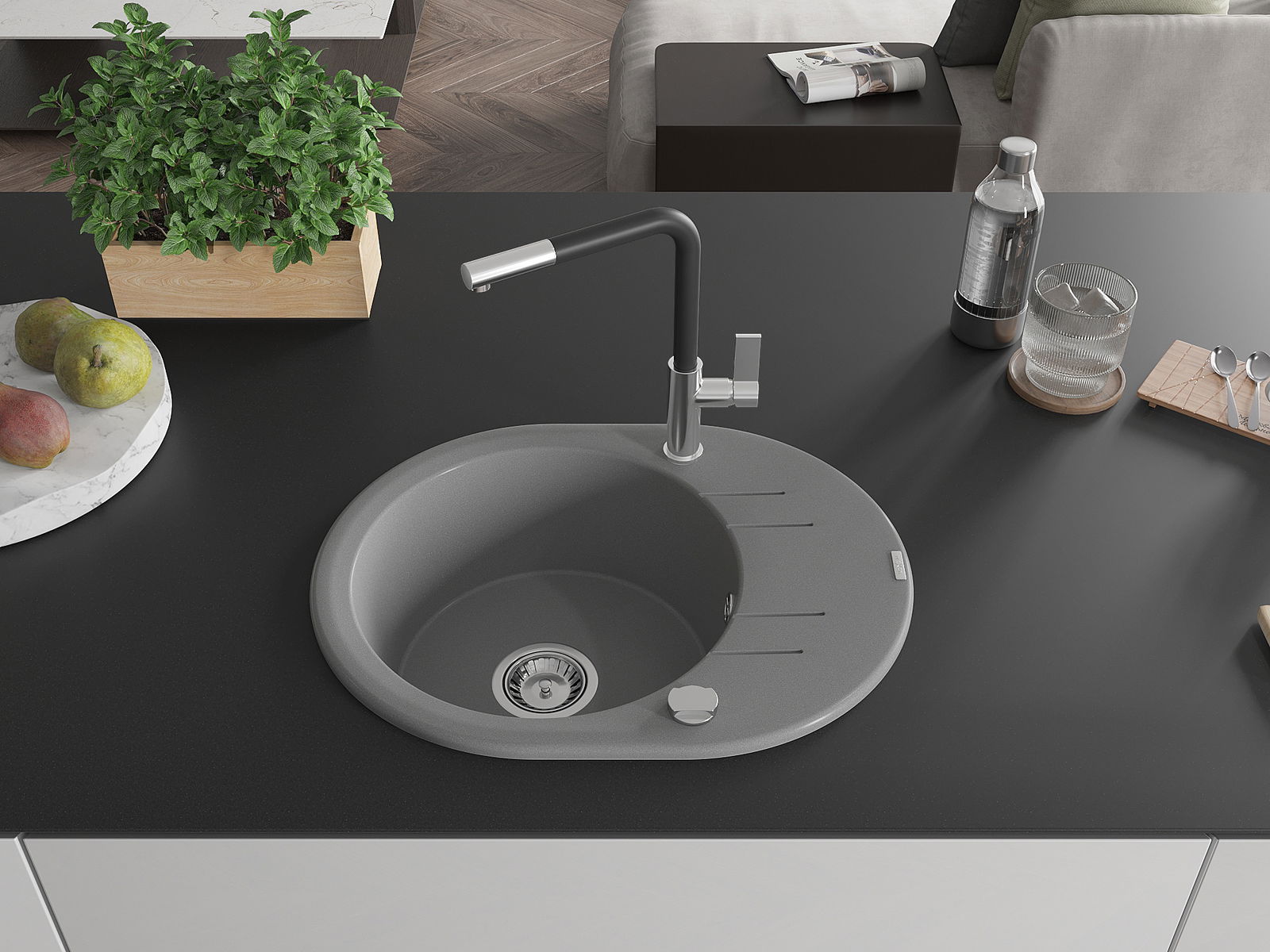 Мивката е направена от висококачествен гранит. Това е елегантно и най -вече практично допълнение към всяка кухня, независимо от нейния стил. Висококачествената и гранитна издръжливост осигуряват много години употреба.