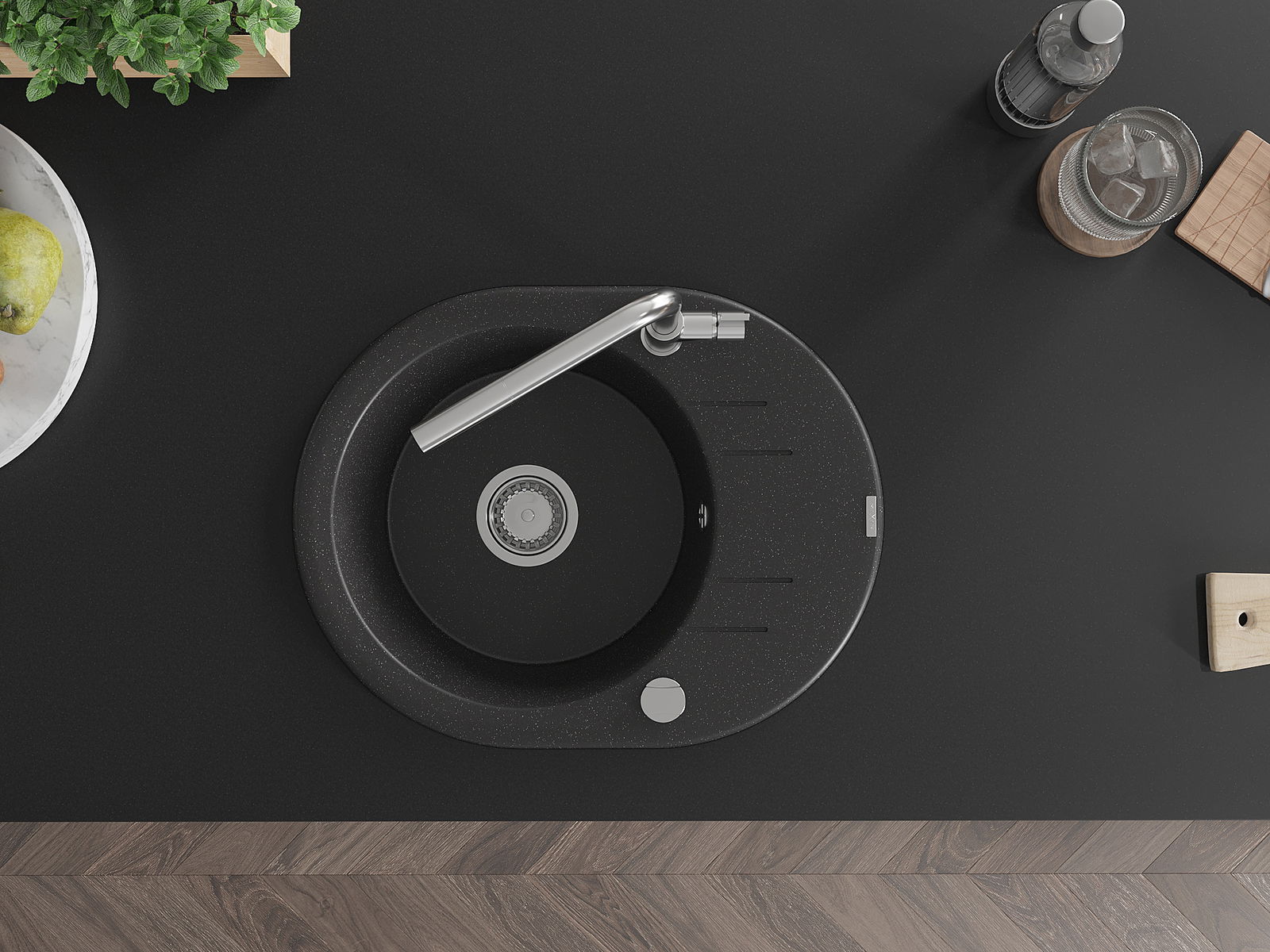 Мивката е направена от висококачествен гранит. Това е елегантно и най -вече практично допълнение към всяка кухня, независимо от нейния стил. Висококачествената и гранитна издръжливост осигуряват много години употреба.