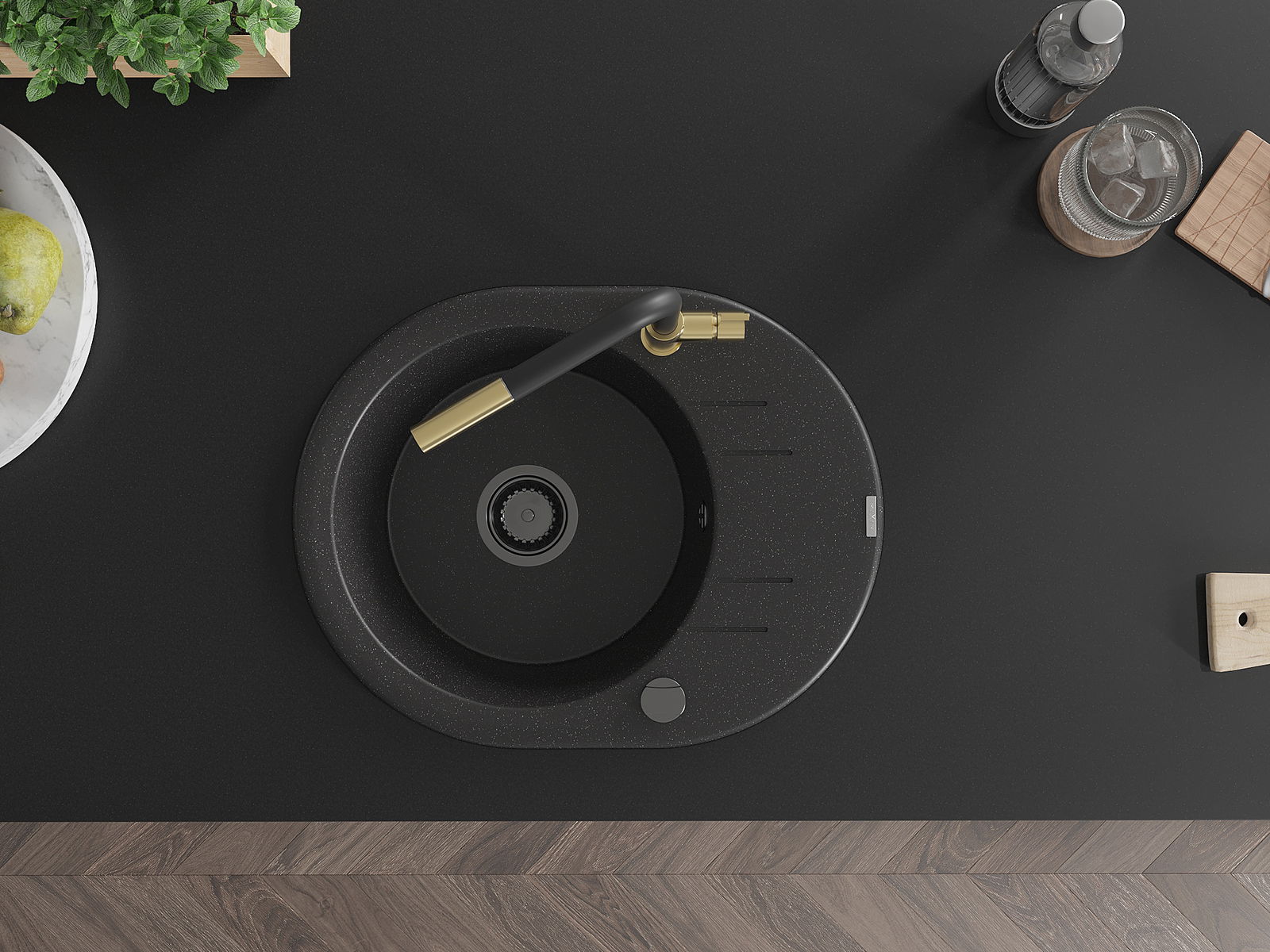 Мивката е направена от висококачествен гранит. Това е елегантно и най -вече практично допълнение към всяка кухня, независимо от нейния стил. Висококачествената и гранитна издръжливост осигуряват много години употреба.