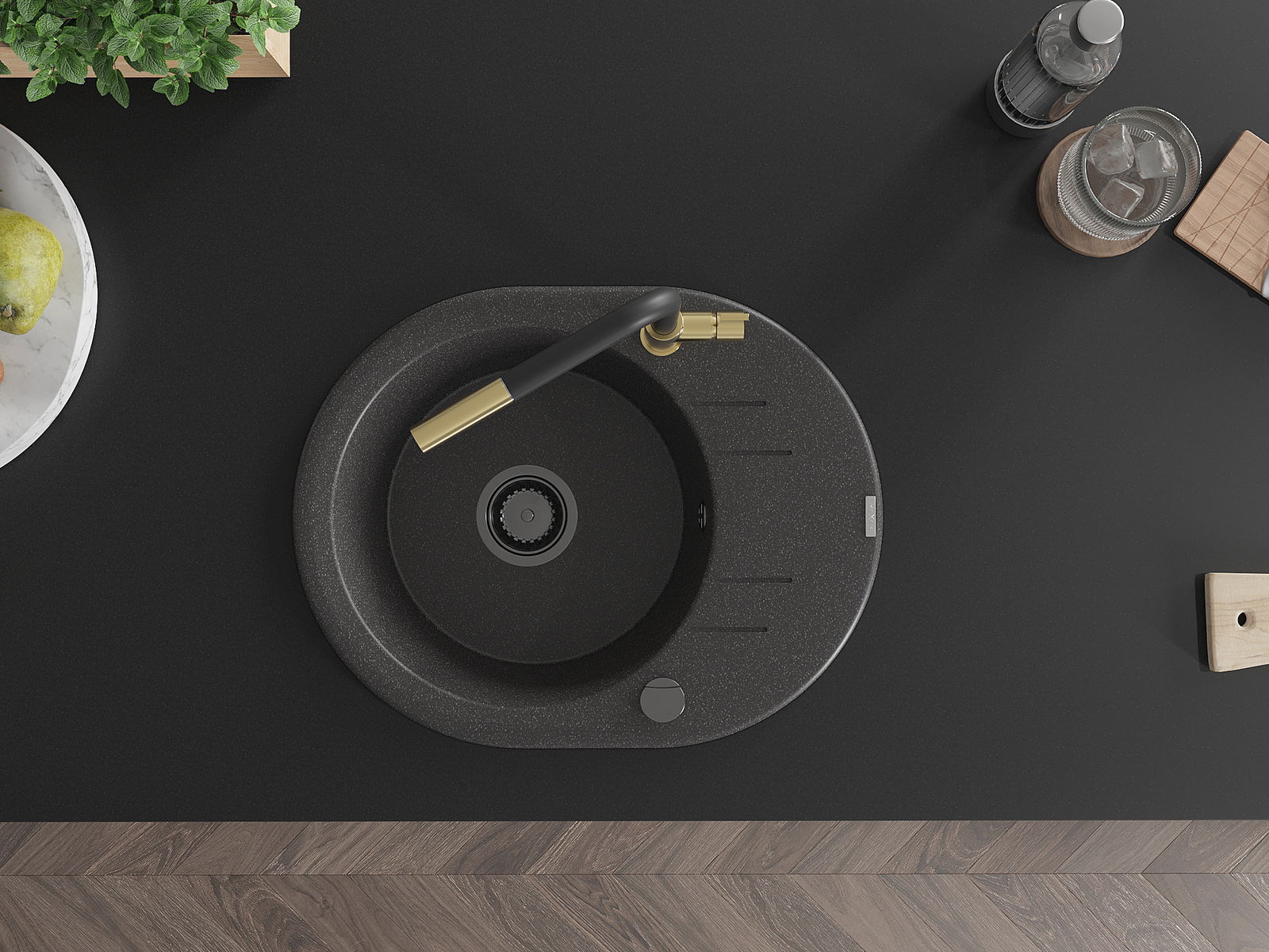 Мивката е направена от висококачествен гранит. Това е елегантно и най -вече практично допълнение към всяка кухня, независимо от нейния стил. Висококачествената и гранитна издръжливост осигуряват много години употреба.