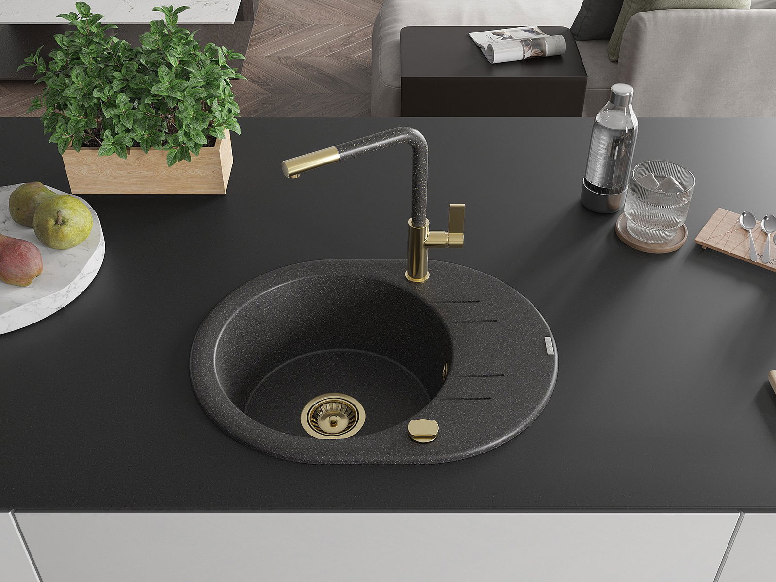 Mexen Kevin гранитна мивка с 1 отделение, отцедник и кухненски смесител Flora,