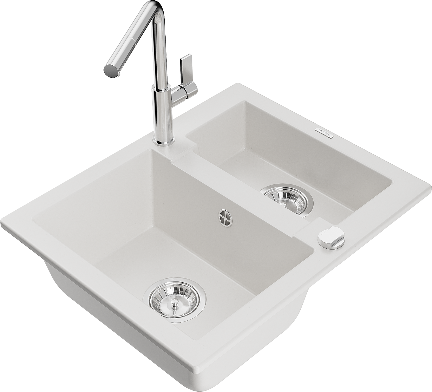 Mexen Carlos гранитна мивка с 1,5 камери и кухненски смесител Flora, бяла