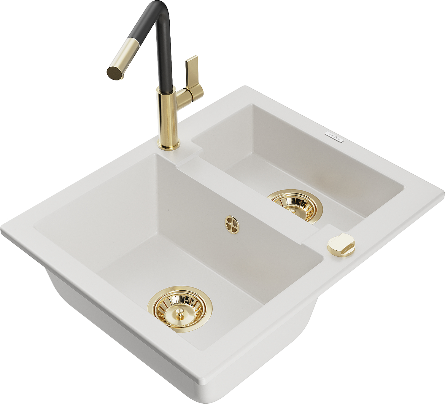 Мексиен Карлос гранитна мивка 1,5-коморна с кухненски смесител Флора, бял - 6518-20-670401-57-G