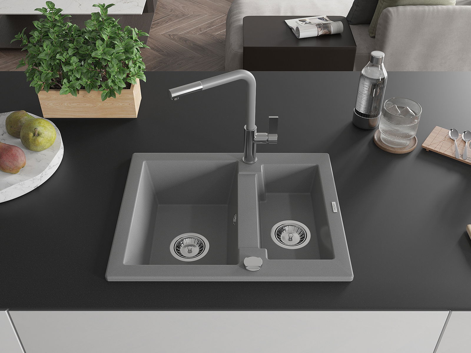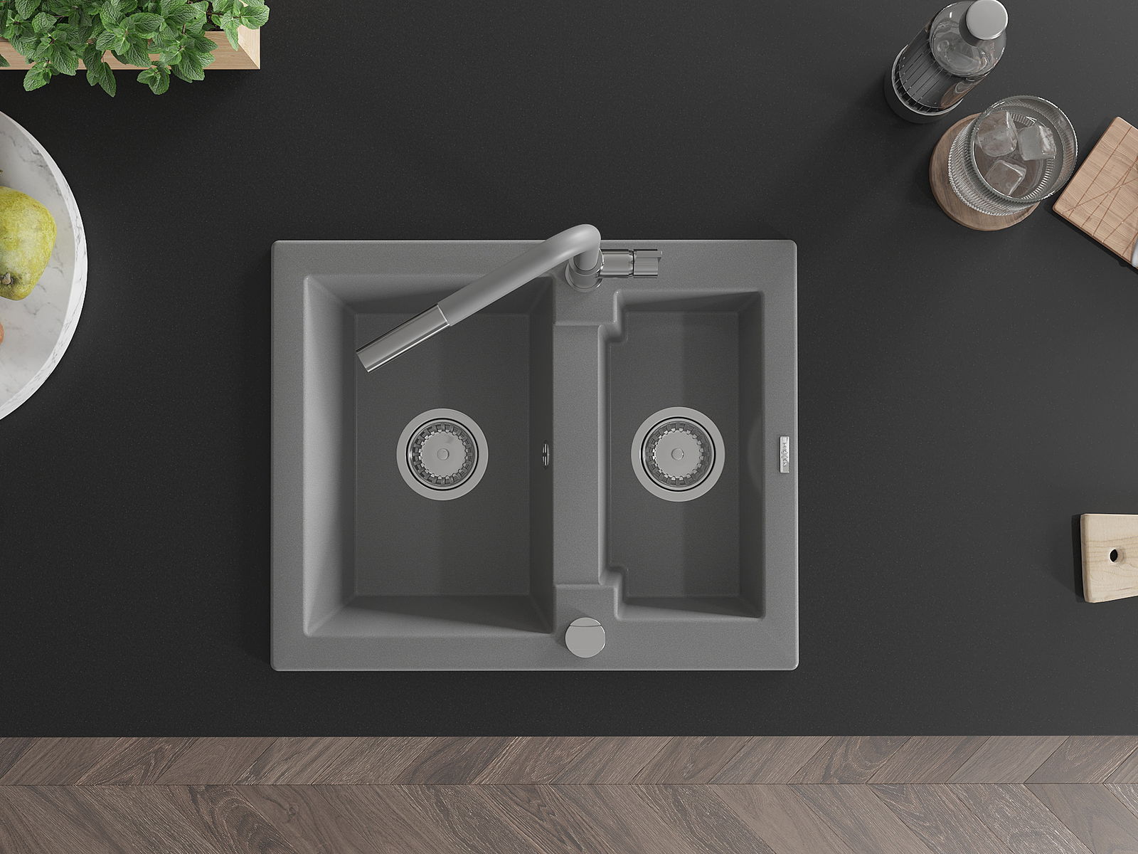 Мивката е направена от висококачествен гранит. Това е елегантно и най -вече практично допълнение към всяка кухня, независимо от нейния стил. Висококачествената и гранитна издръжливост осигуряват много години употреба.