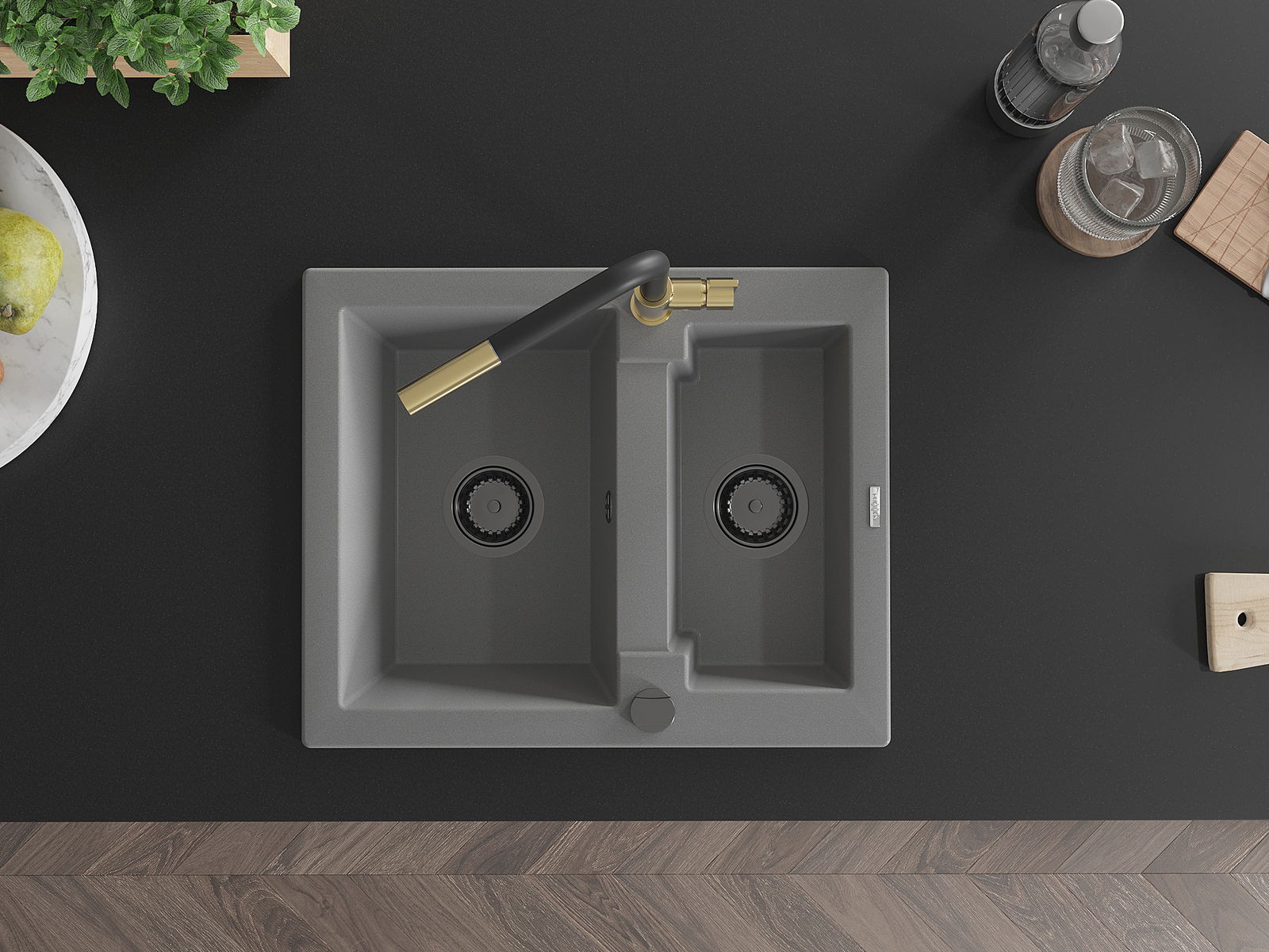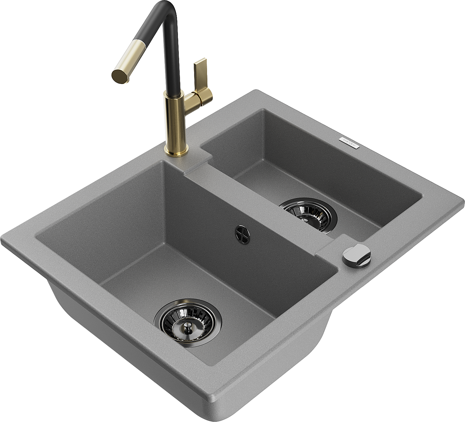 Mexen Carlos гранитна мивка с 1,5 камери и кухненски смесител Flora, сива - 6518-71-670401-57-B