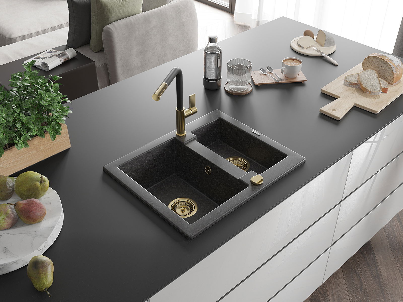 Мивката е направена от висококачествен гранит. Това е елегантно и най -вече практично допълнение към всяка кухня, независимо от нейния стил. Висококачествената и гранитна издръжливост осигуряват много години употреба.