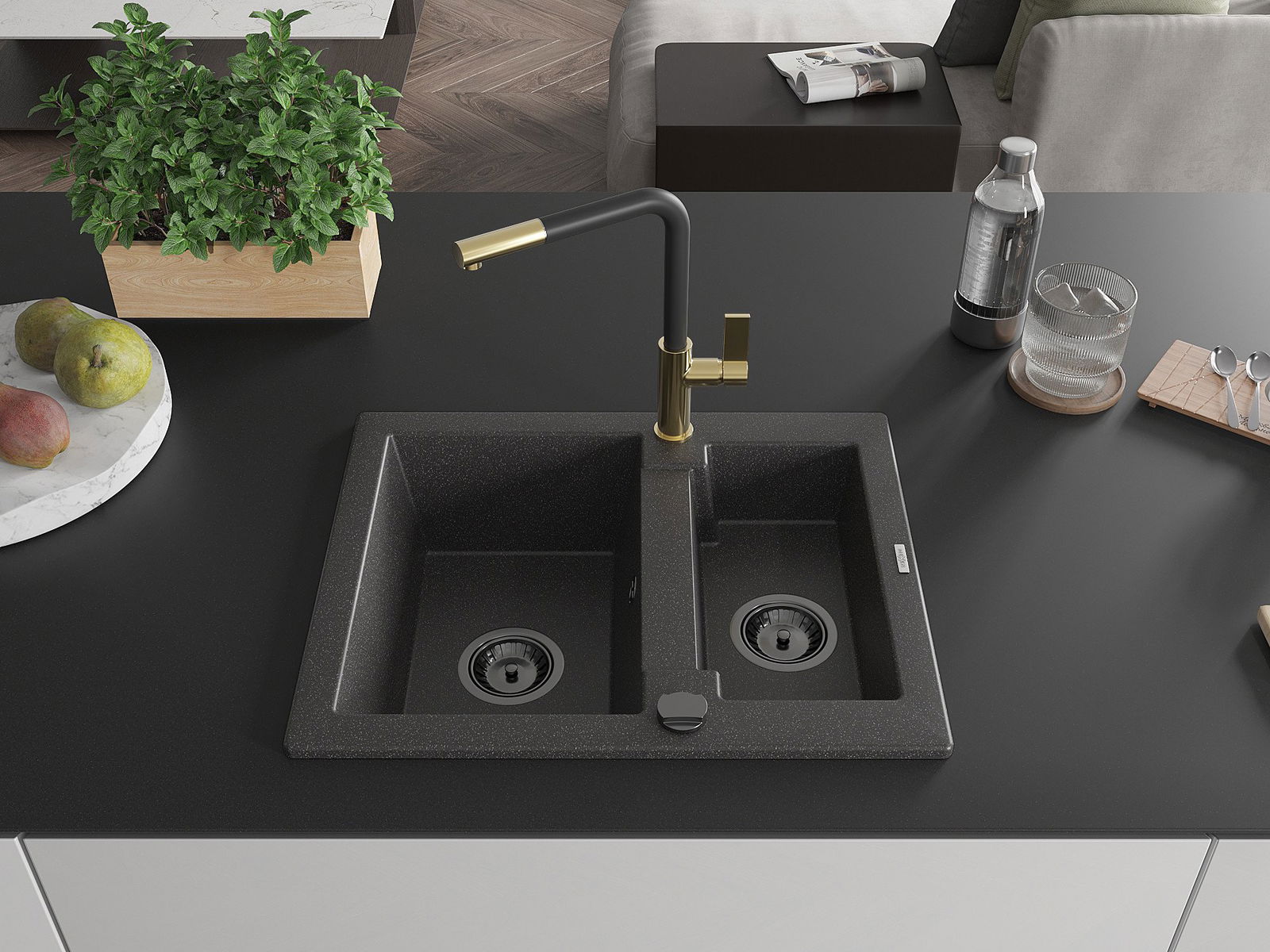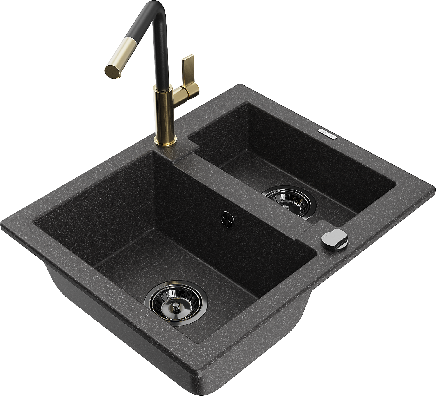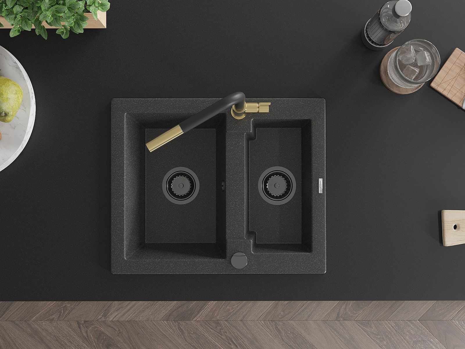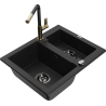 Mexen Carlos гранитна мивка с 1,5 камери с кухненски смесител Flora, черен на