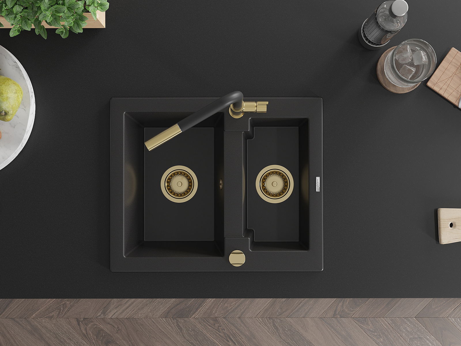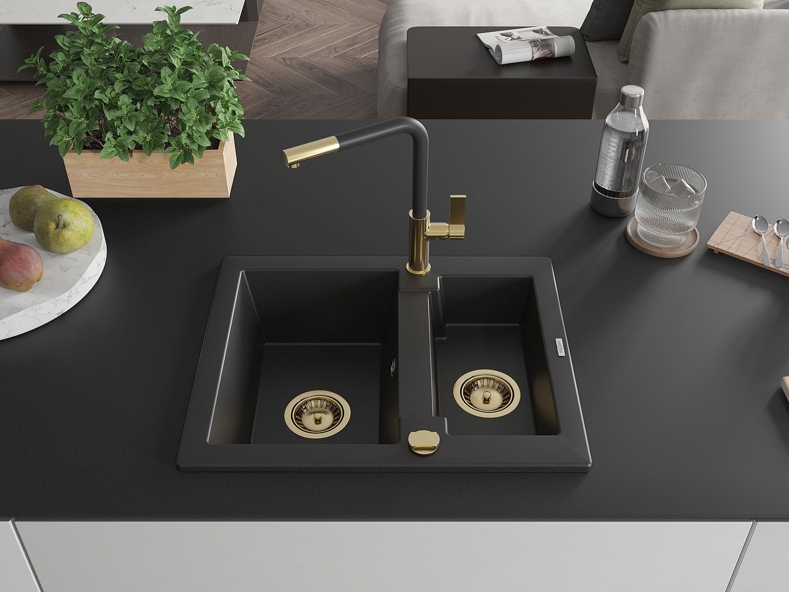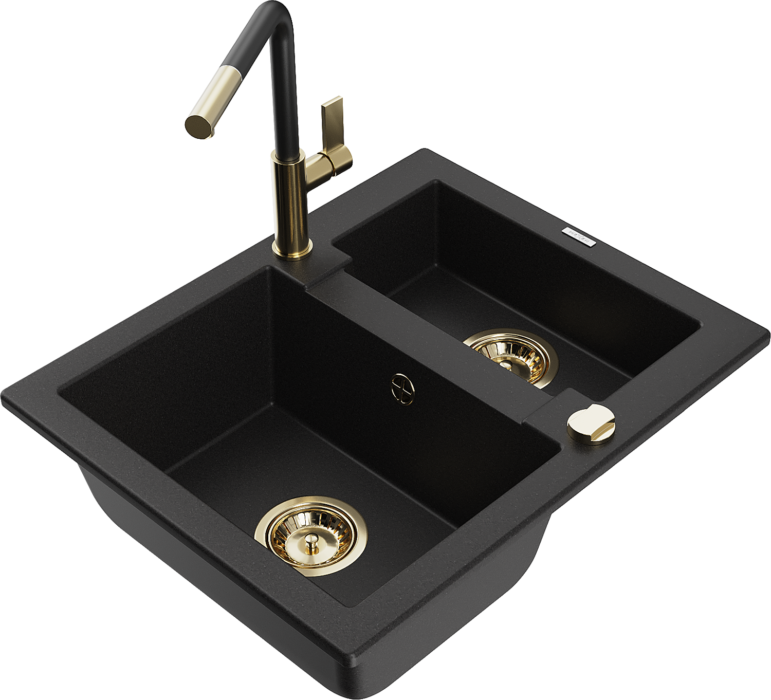 Mexen Carlos гранитна мивка с 1,5 камери с кухненски смесител Flora, черен