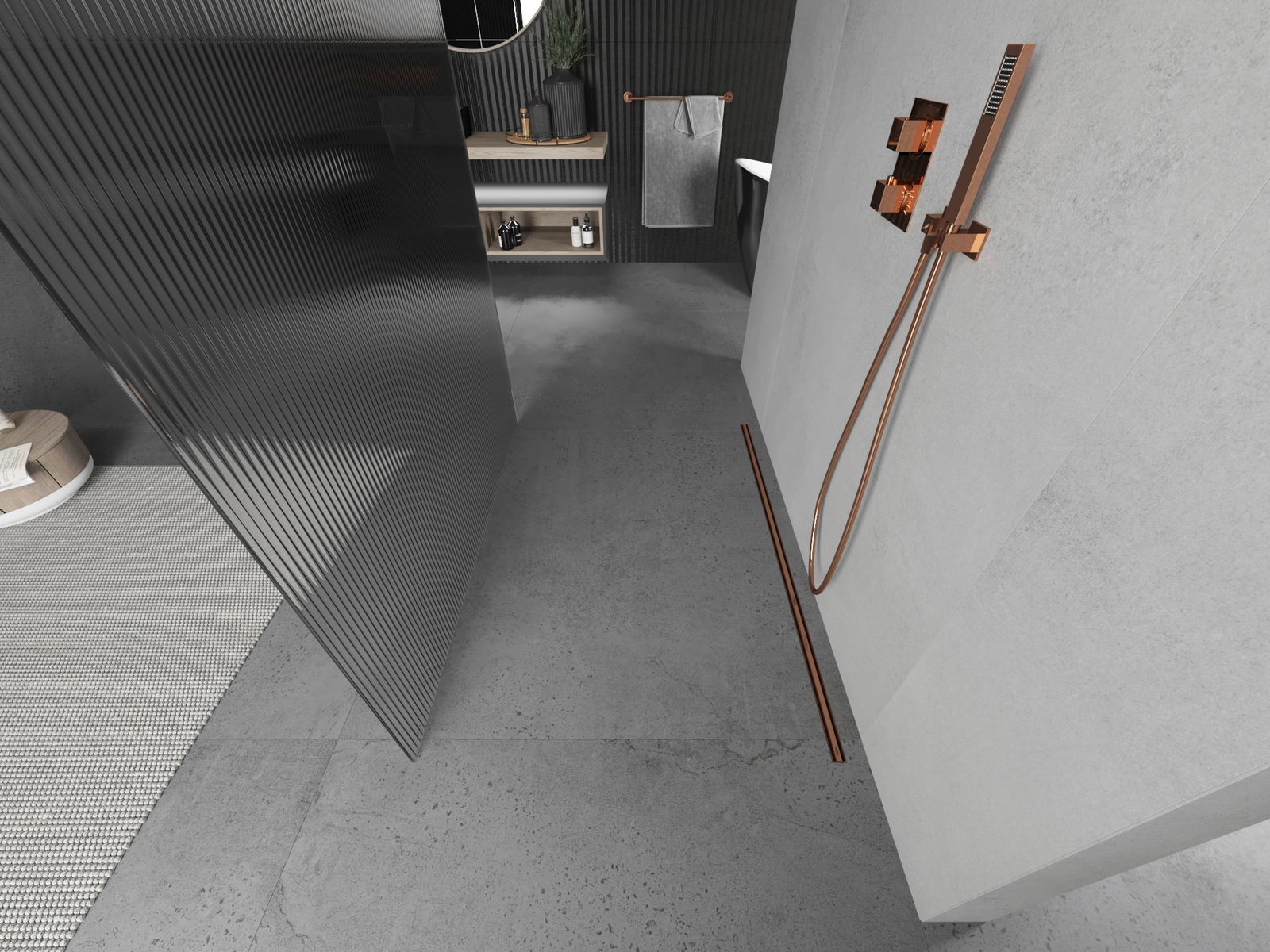 Mexen Kioto свободностояща душ преграда 130 x 200 см, ивици 8 мм, розово злато