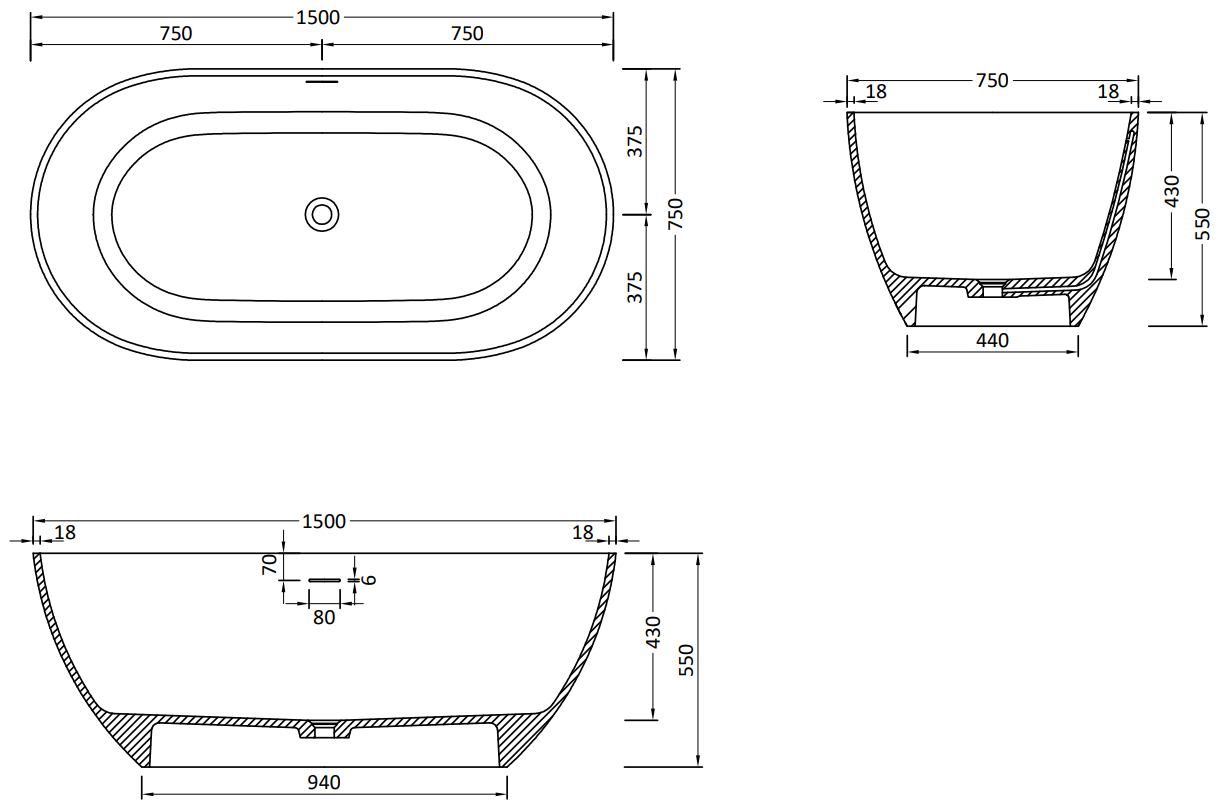 Матовата повърхност перфектно подчертава характера на цвета на продукта, като му придава уникален и отличителен завършек. Фината текстура на матовата вана внася елегантност в банята, създавайки естетaически издържано пространство.