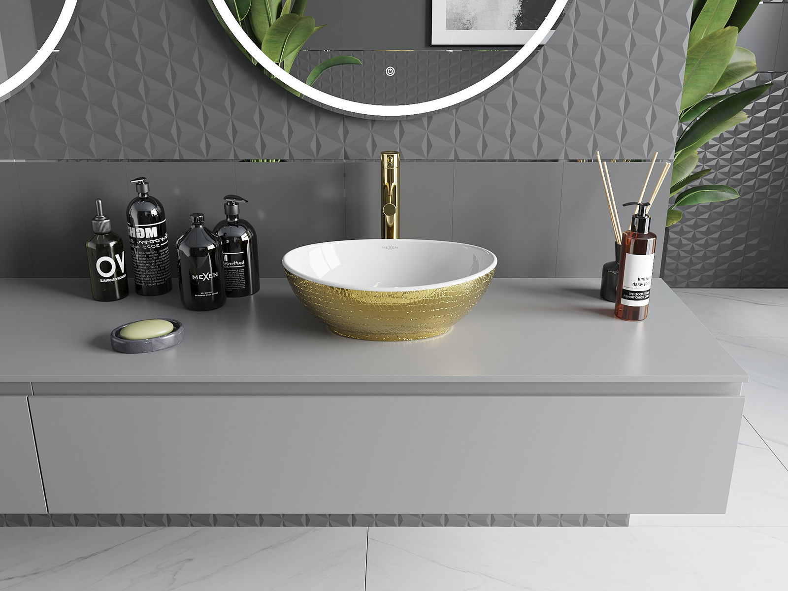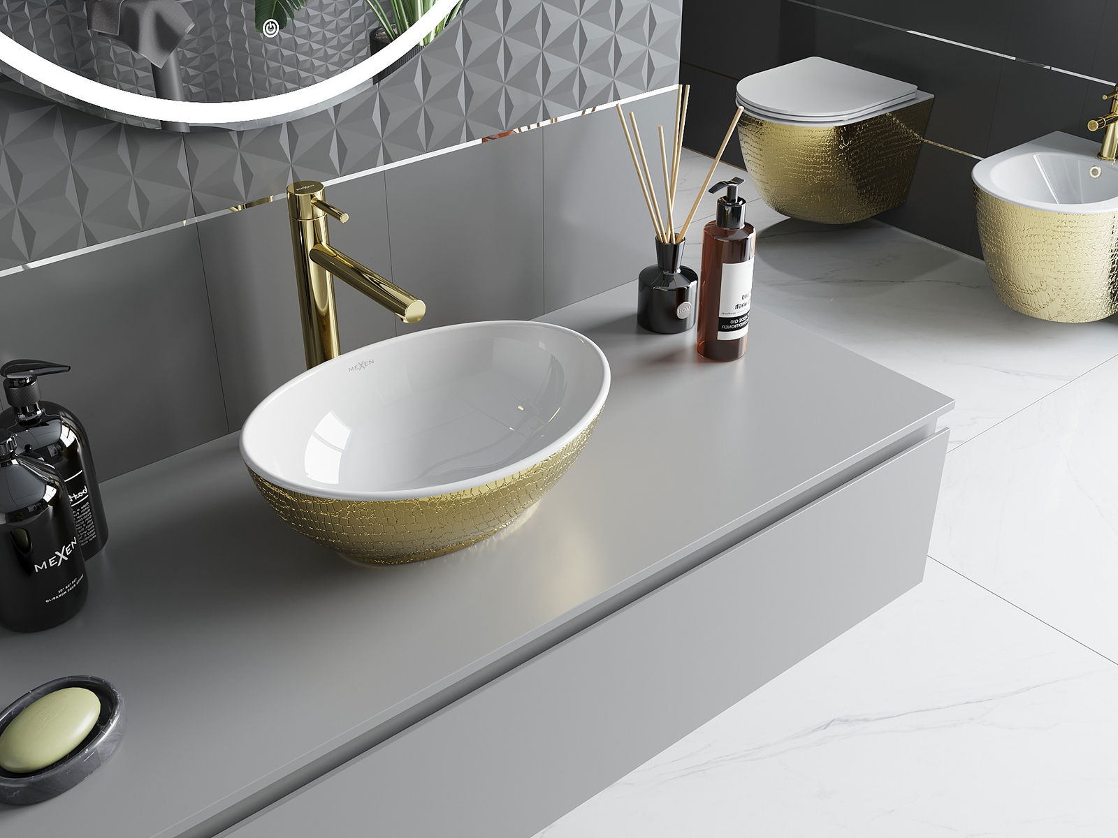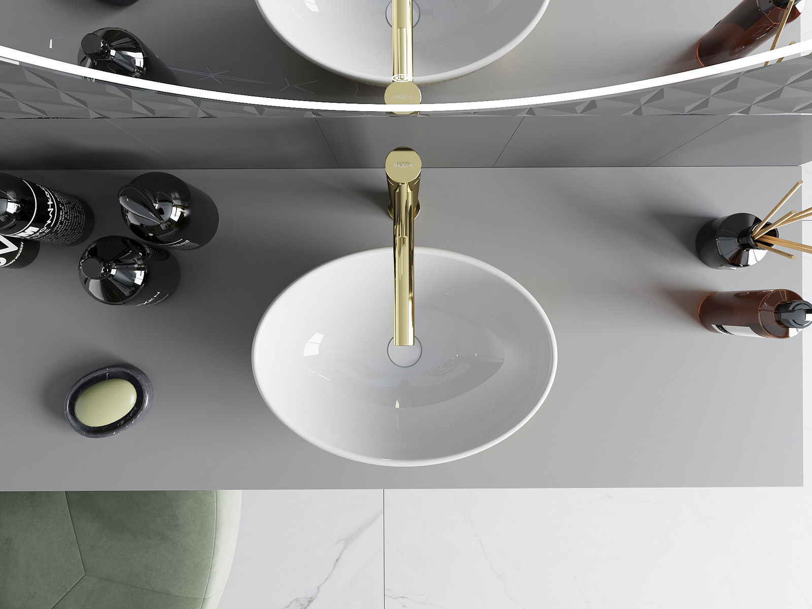Лъскавата керамика е елегантна и безвременна. Той добавя специален блясък към банята, подчертава естетиката си и въвежда повече елегантност на интериора. Блясъкът отразява светлината, благодарение на която създава впечатление за разширяване и яркост.
