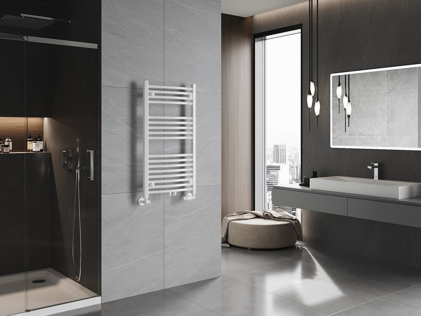 Mexen Ares е модерен банен радиатор в бял цвят RAL 9016, с размери 900 x 500 мм, идеален за всяка баня. Благодарение на отоплителната мощност от 372 W и възможността за работа при температура до 95 °C, той перфектно затопля помещението. Изработен от устойчива стомана, той притежава висококачествено бояджийско покритие, устойчиво на корозия. Радиаторът тежи 6,03 кг, а разстоянието за свързване може да се регулира (45 см долно или 5 см средно). Продуктът предлага възможност за монтиране на нагревател и съдържа всички необходими монтажни елементи.