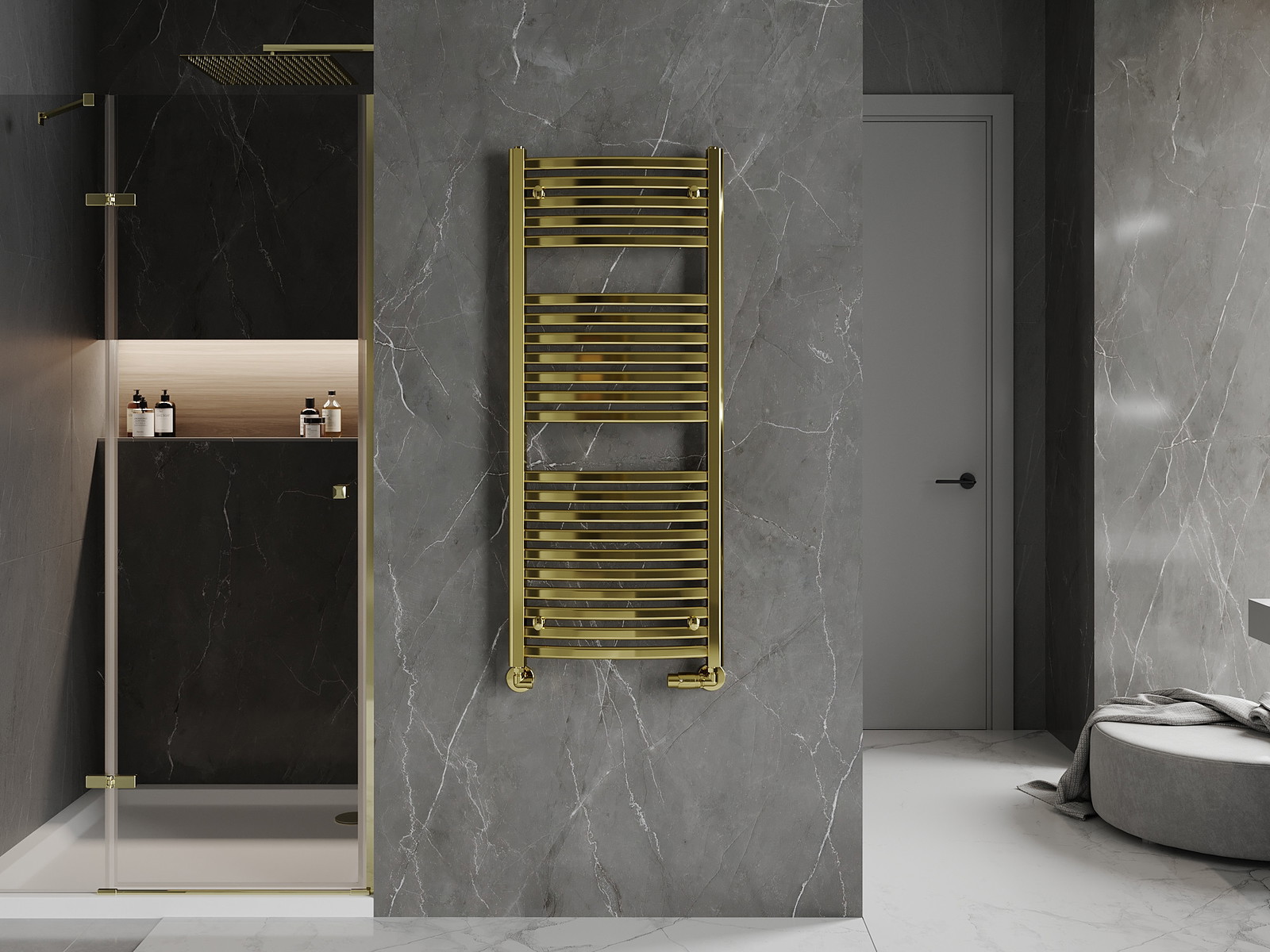 Mexen Helios е луксозен баневски радиатор с размери 1200 x 500 мм и уникален златист цвят, който ще добави елегантност към всяка баня. Изработен от стомана, той се отличава не само със стилен външен вид, но и с висока издръжливост и устойчивост на корозия благодарение на специалното лаково покритие. Разполага с отоплителна мощност от 448 W, осигурявайки оптимално отопление. Оборудван с 4 връзки ½″ и възможност за монтаж на нагревател, предлага гъвкавост при инсталацията. Комплектът включва всички необходими монтажни аксесоари.