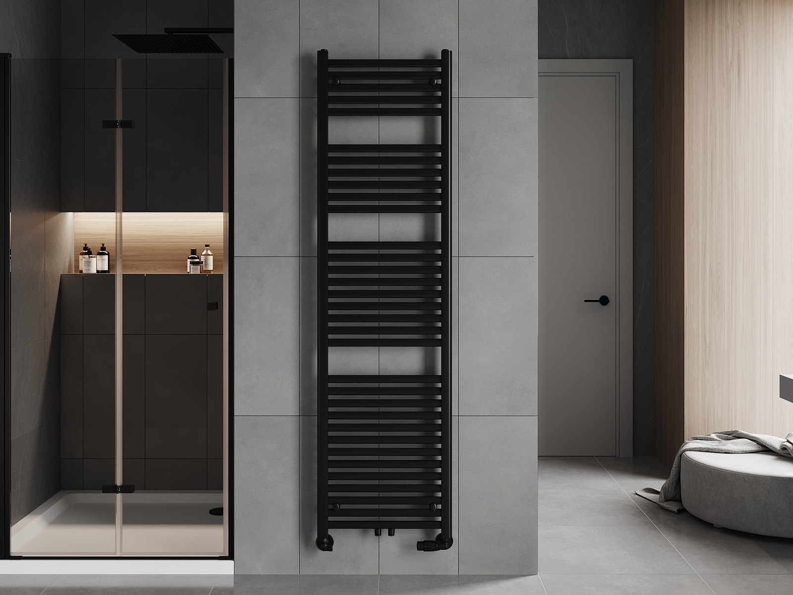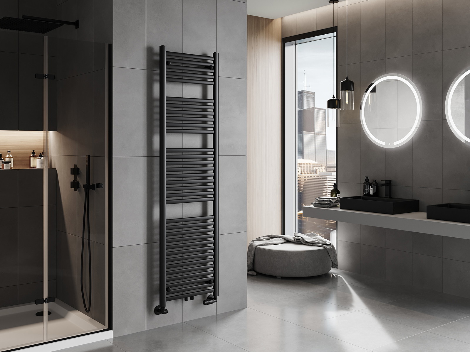 Mexen Hades е модерен баня радиатор с размери 1800 x 500 мм, отличаващ се с отоплителна мощност от 854 W и елегантно черно покритие RAL 9005. Изработен от стомана, радиаторът се характеризира с висока устойчивост на корозия благодарение на издръжливото лакирано покритие. Монтажът е гъвкав благодарение на разнообразните опции за свързване: долно (45 см) и централно (5 см). Максималната работна температура е 95 °C, а работното налягане е 0,6 Mpa. Допълнително, радиаторът предлага възможност за монтиране на електрически нагревател. Комплектът включва окачвания, монтажен комплект, запушващи щоки и вентилатор, което го прави пълно решение за вашата баня.