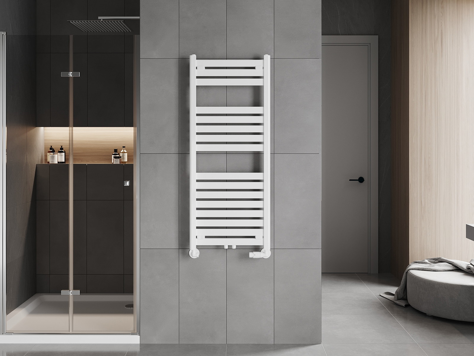Mexen Uran е модерна радиатор за баня с размери 1200 х 500 mm, идеален за всяка баня. С мощност 534 W осигурява ефективно отопление. Продуктът е изработен от висококачествена стомана, боядисан в бял цвят RAL 9016, устойчив на корозия. Радиаторът има универсални свързвания: 2xG ½″ средно и 4xG ½″ отгоре и отдолу, което улеснява монтажа. Може да бъде използван при макс. работно налягане 0,4 Mpa и темп. 95 °C. В комплекта ще намерите всички елементи за монтаж.