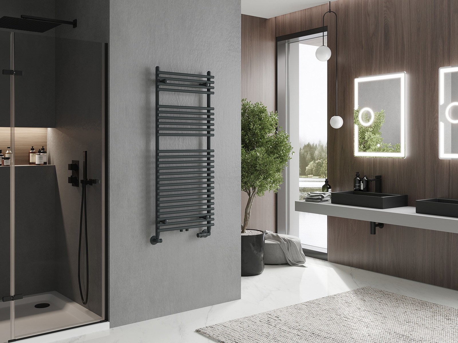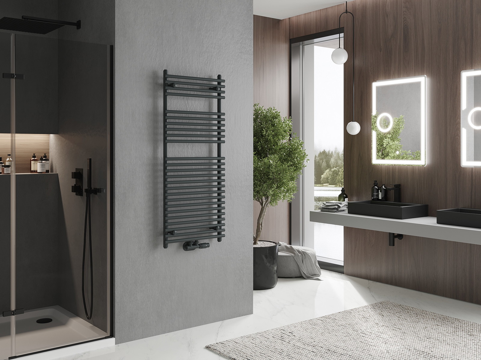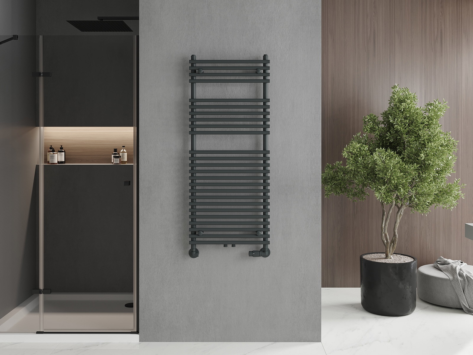 Мексен Сол баня радиатор е идеалното съчетание на функционалност и стил за вашата баня. С размери 1200 мм височина и 500 мм широчина, той се вписва добре в различни пространства. Изработен е от висококачествена стомана с трайно, устойчиво на корозия покритие. Отоплителната мощност от 569 W осигурява бързо загряване, а максималната работна температура е 95 °C. Разполага с гъвкави монтажни опции както за долно, така и за средно свързване, както и възможност за монтиране на нагревател. Предлага се в модерен антрацитен цвят.