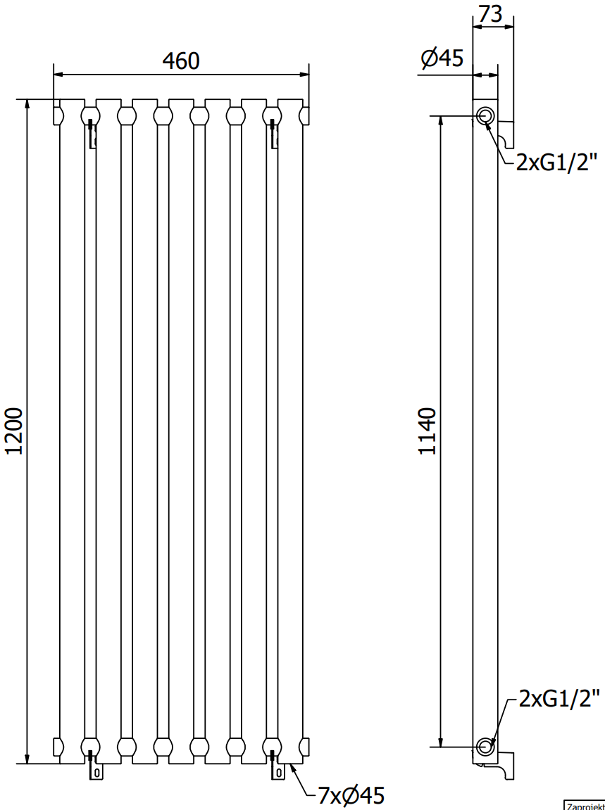 Комплектът включва: закачалки, монтажен комплект, затварящи тапи и обезвъздушител