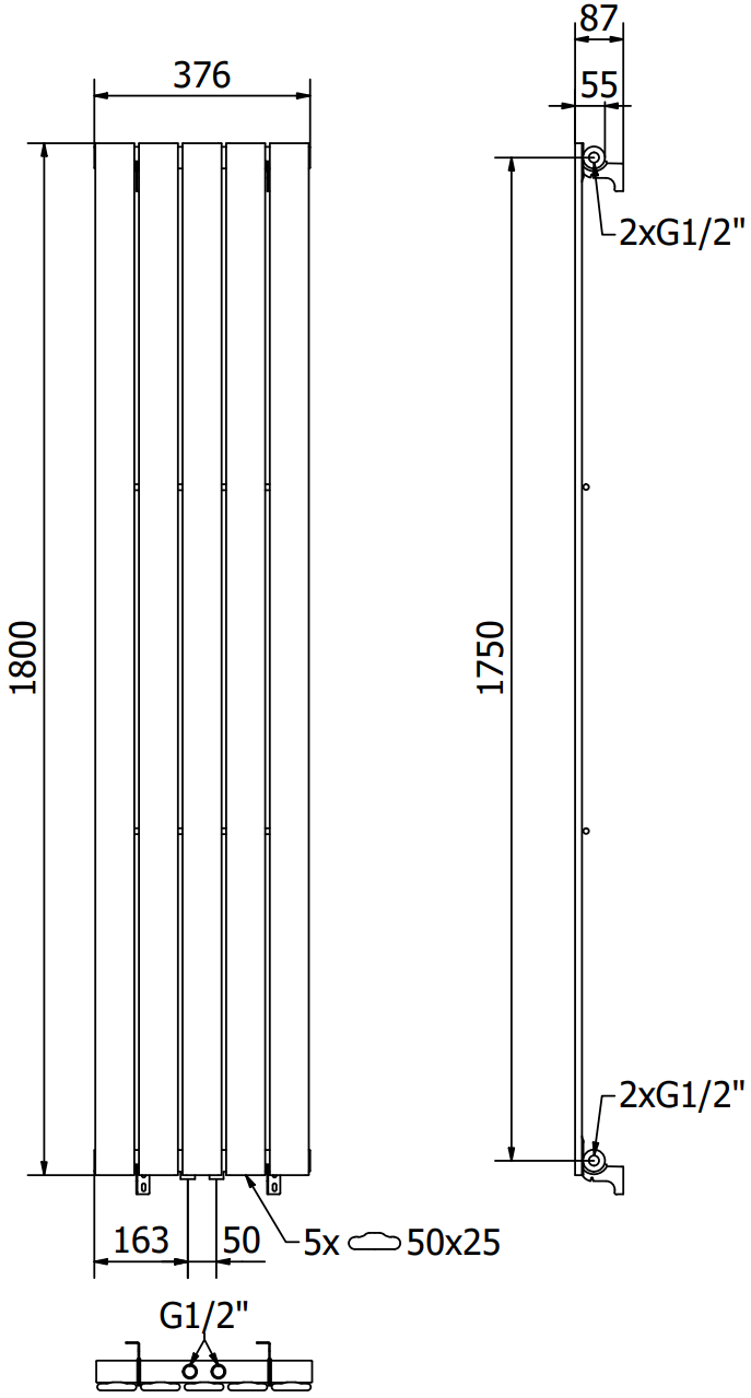 - 4xG ½″ отгоре и отдолу от дясната или лявата страна