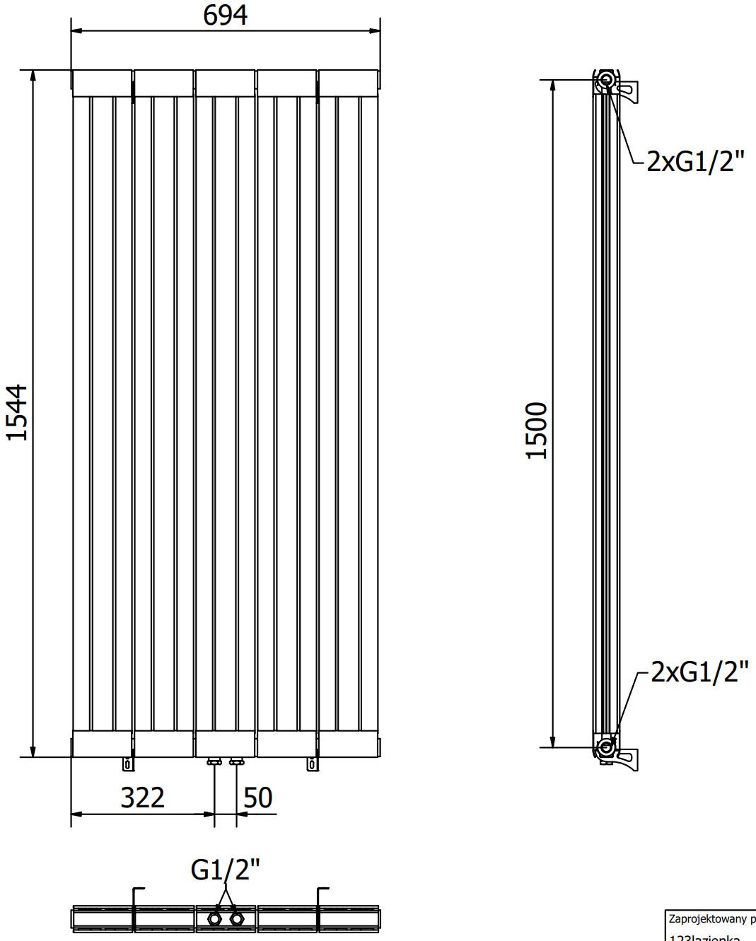- 2xG ½″ централно