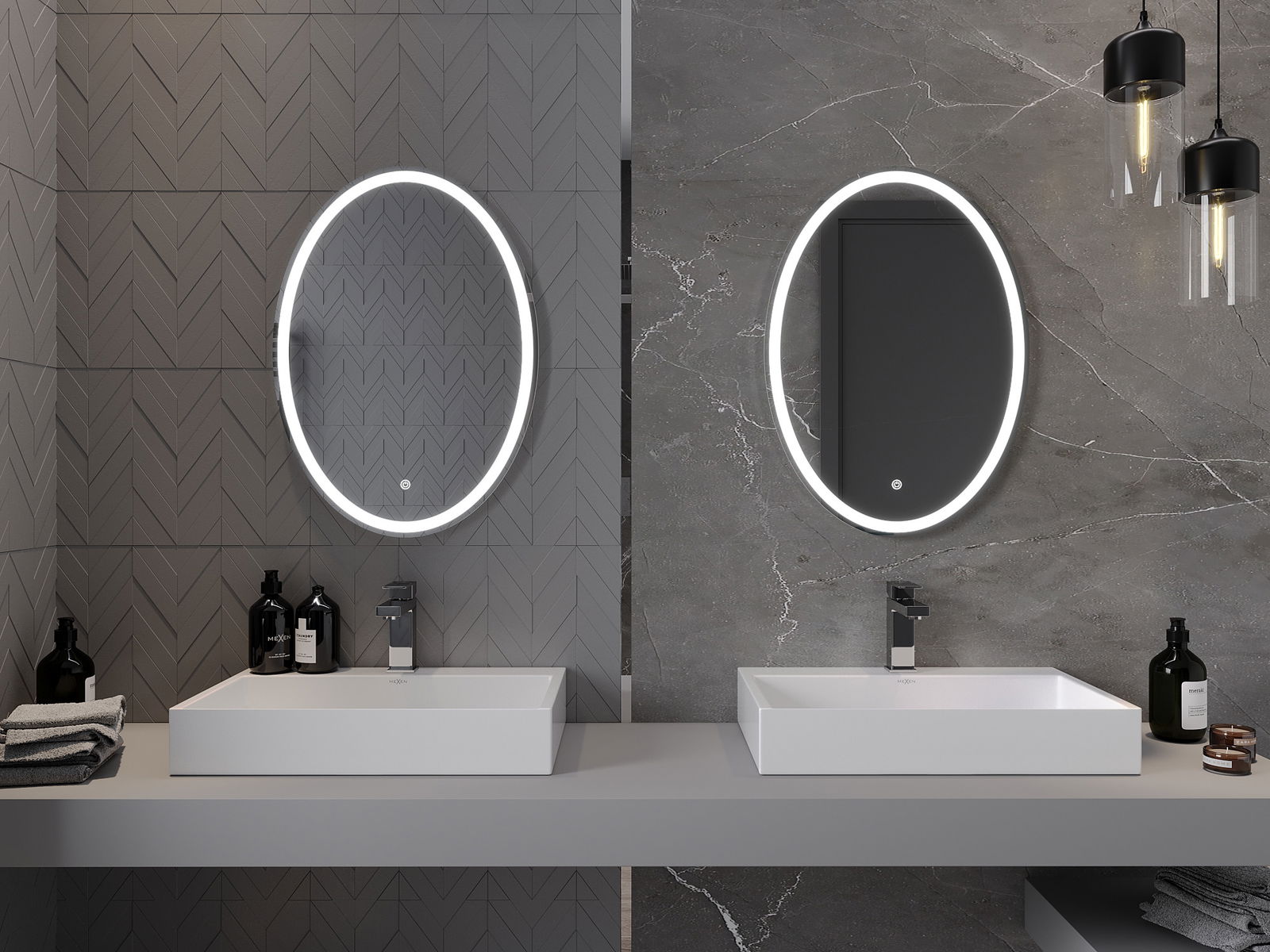 LED подсветката на огледалото е практичен елемент, който улеснява ежедневната грижа, благодарение на възможността за идеално осветление на лицето. Подсветката придава на банята модерен завършек, подчертавайки елегантния му декор.