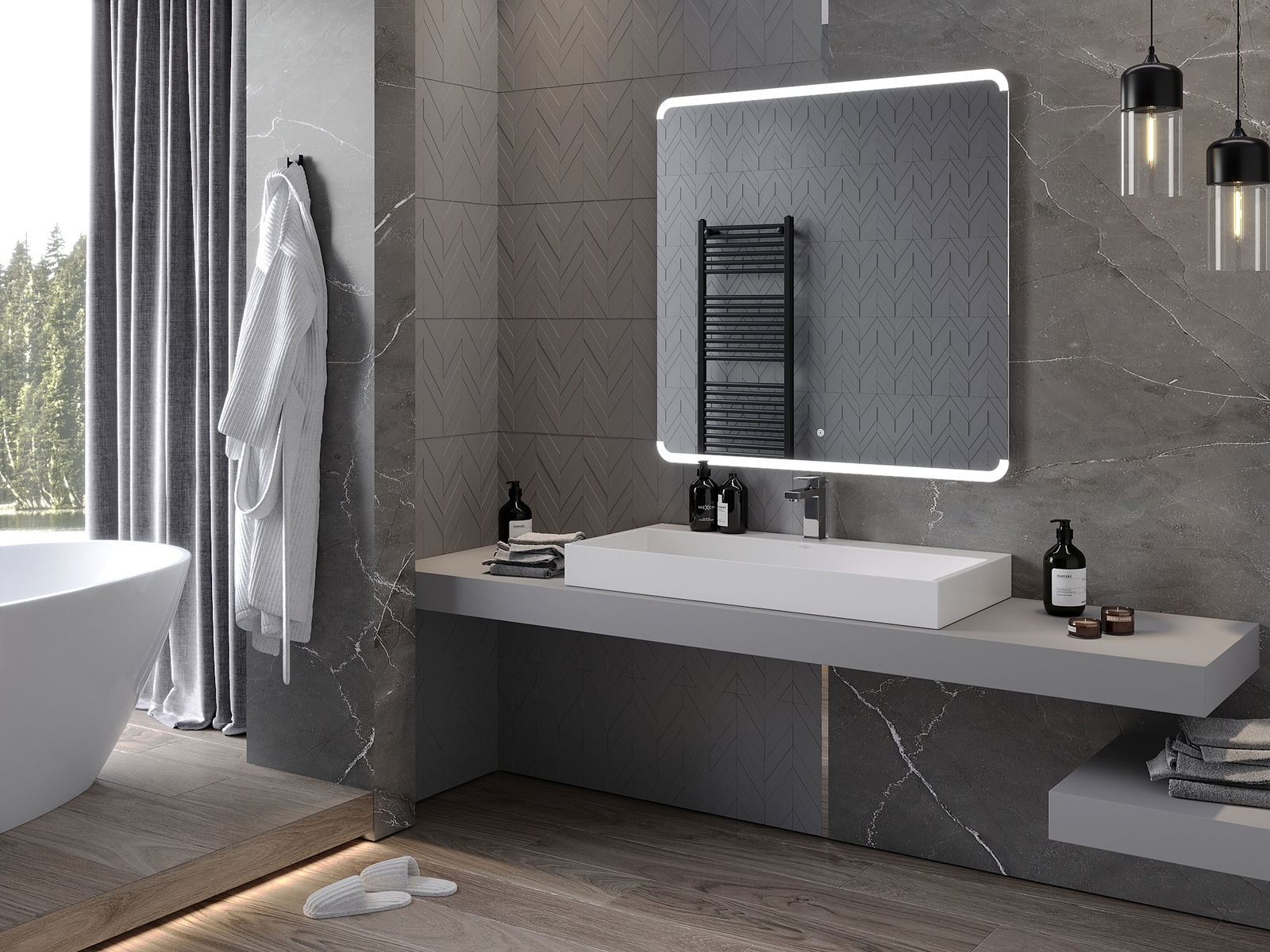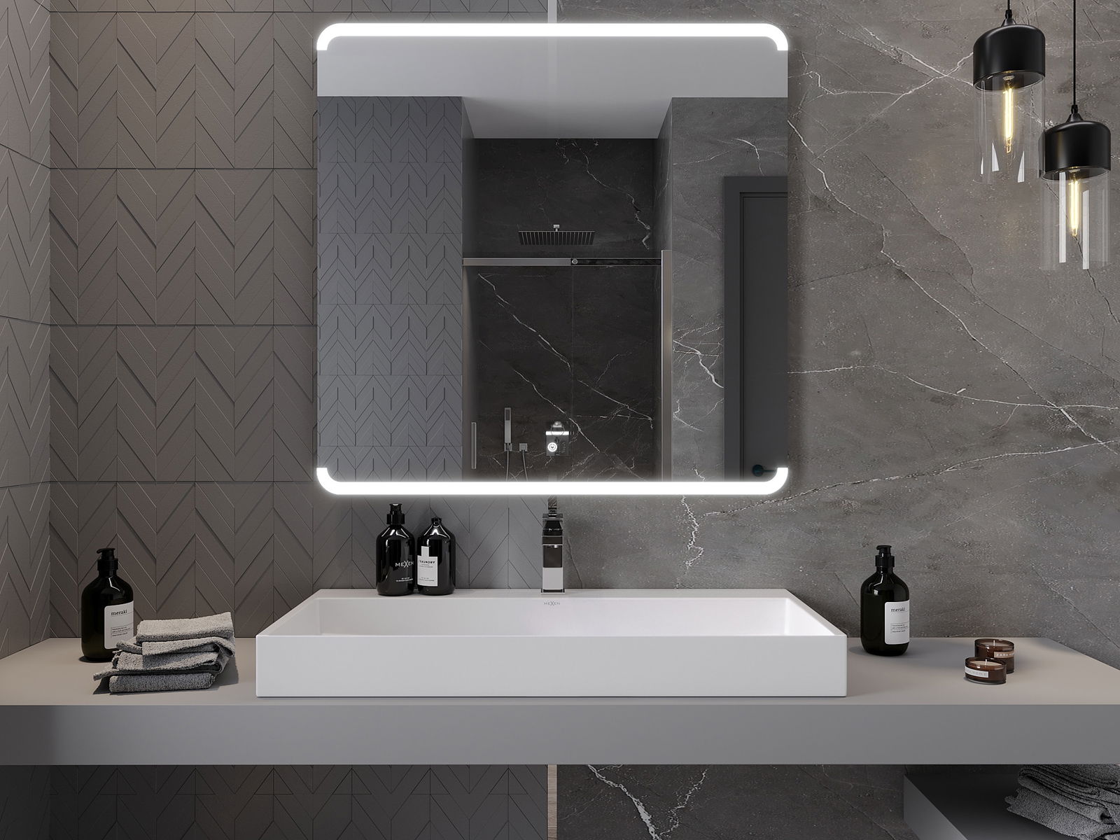 LED подсветката на огледалото е практичен елемент, който улеснява ежедневната грижа, благодарение на възможността за идеално осветление на лицето. Подсветката придава на банята модерен завършек, подчертавайки елегантния му декор.