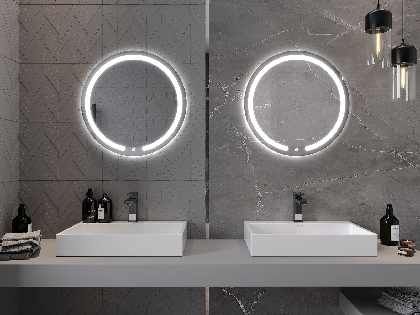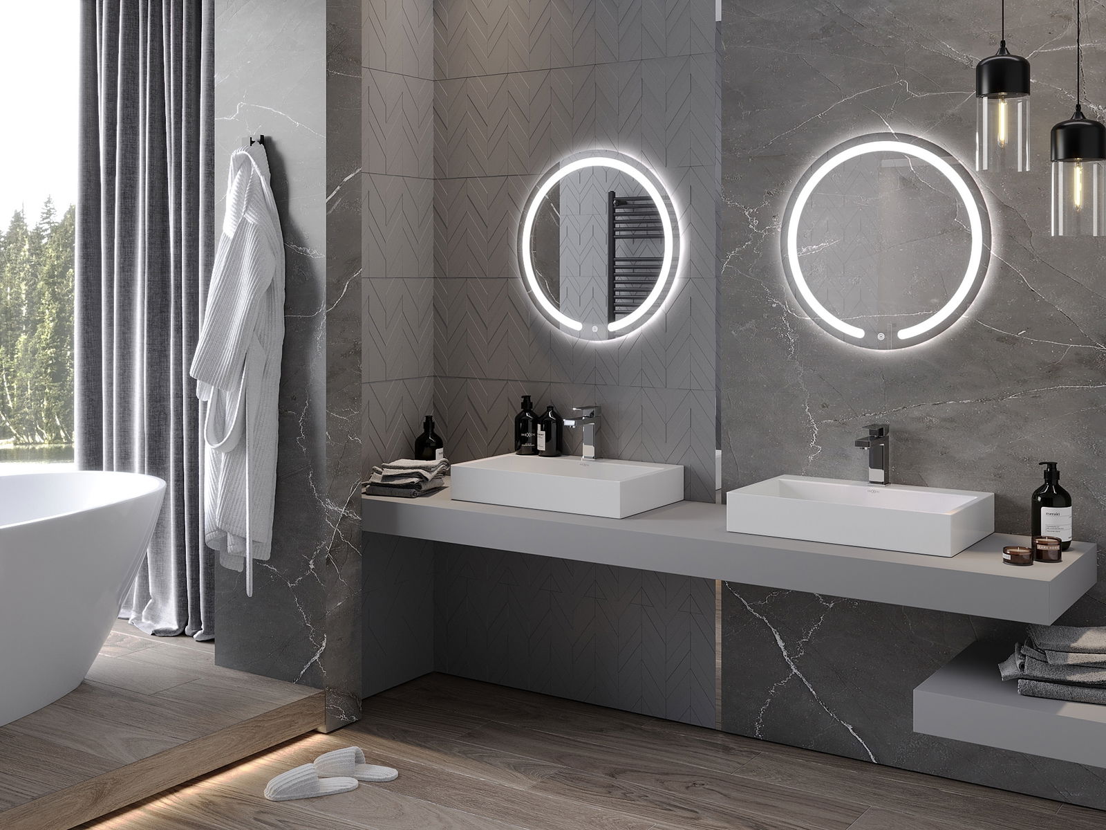 LED подсветката на огледалото е практичен елемент, който улеснява ежедневната грижа, благодарение на възможността за идеално осветление на лицето. Подсветката придава на банята модерен завършек, подчертавайки елегантния му декор.