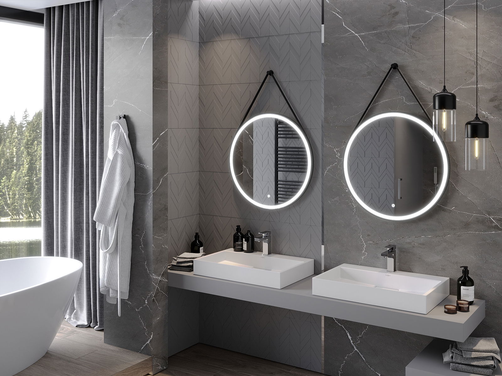 LED подсветката на огледалото е практичен елемент, който улеснява ежедневната грижа, благодарение на възможността за идеално осветление на лицето. Подсветката придава на банята модерен завършек, подчертавайки елегантния му декор.