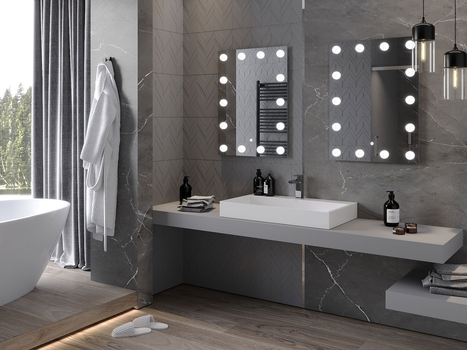 Огледалото е оборудвано със студено LED осветление - 6000k. Той осигурява интензивно и ясно осветление, което ви позволява да забележите дори и най -малките детайли. Перфектно поддържа ежедневните лечения за грижа за лицето.