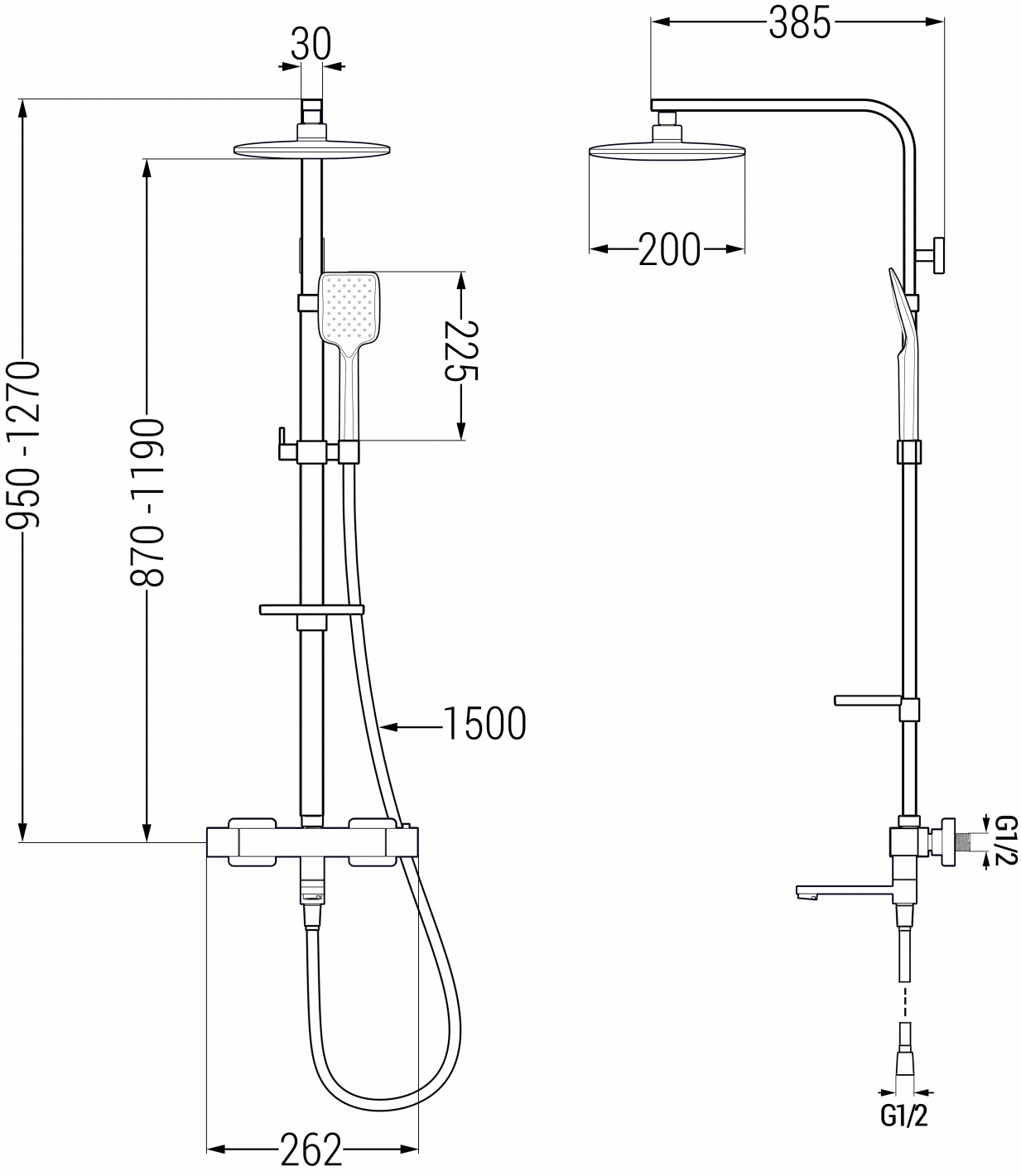 Присъединяване: G3/4" (горе) и G1/2" (долу)