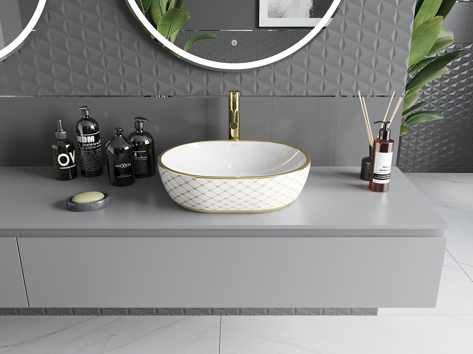 Плотновият умивалник Mexen Viki 48 x 35 см е идеалното съчетание на стил и функционалност. Изработен от санитарна керамика, има елегантен бял цвят със златен каре, което гарантира естетичния външен вид на всяка баня. Благодарение на защитното покритие, повърхността остава в перфектно състояние за дълго време. Неговата овална форма и височина 14 см го правят не само красив, но и практичен. Изключителното качество на изработка и липсата на отвори за батерия и преливане добавят модерен характер.