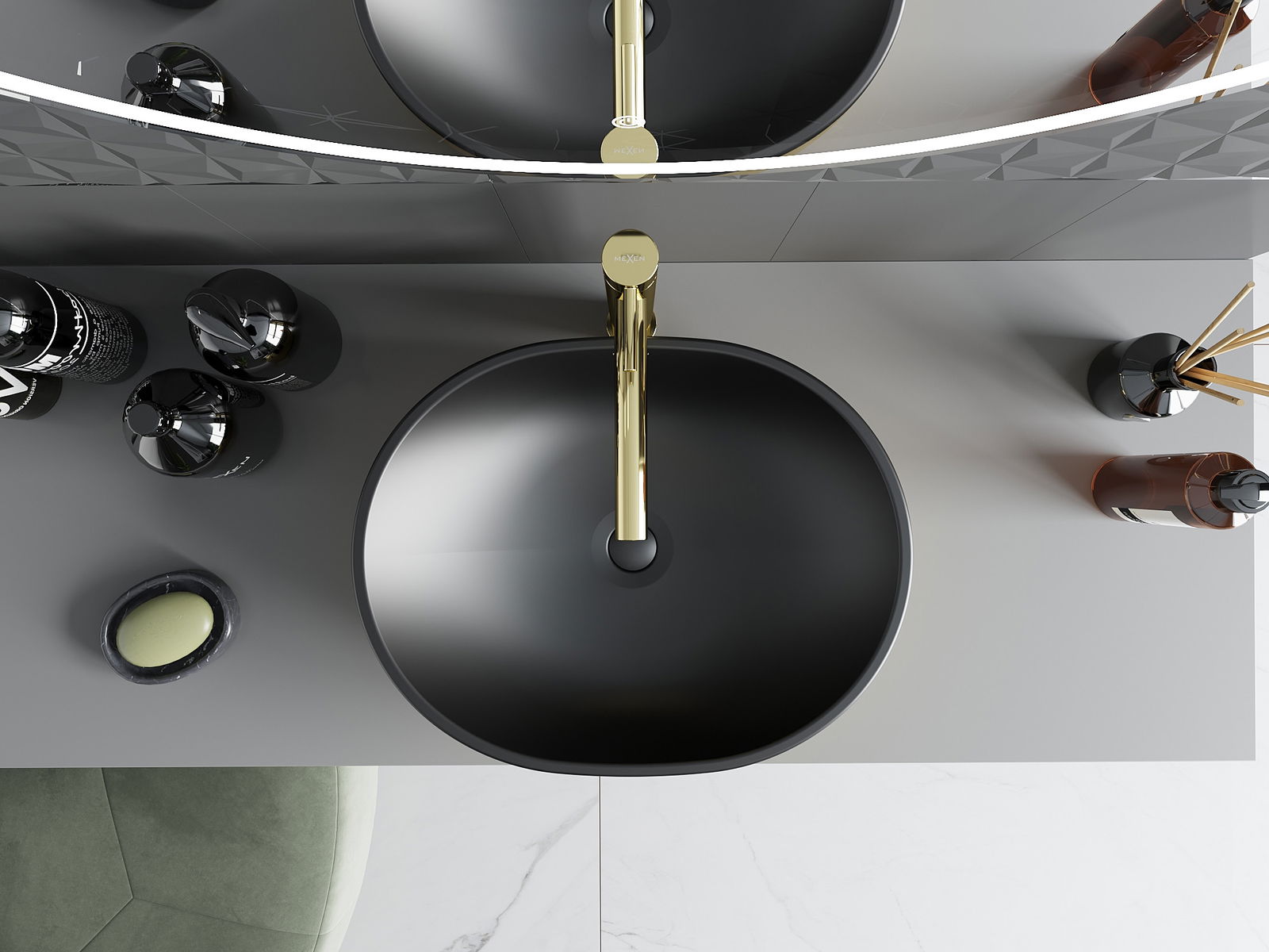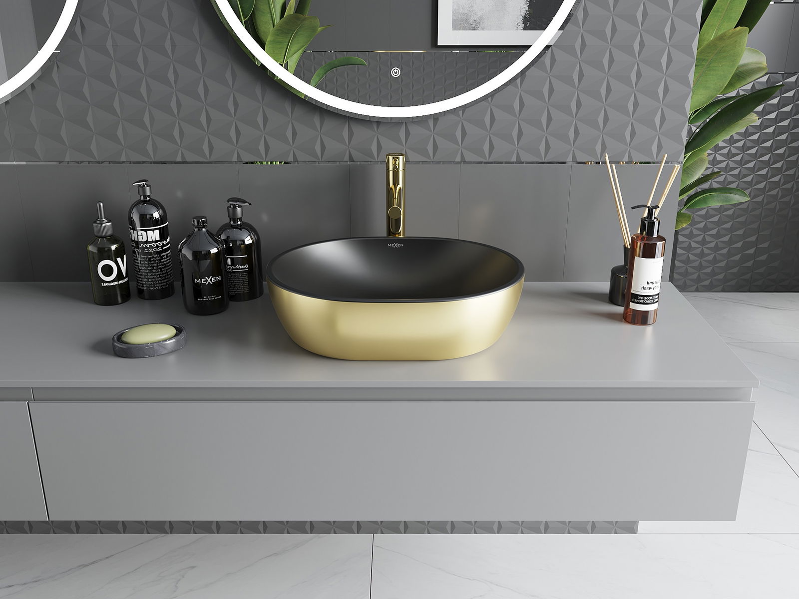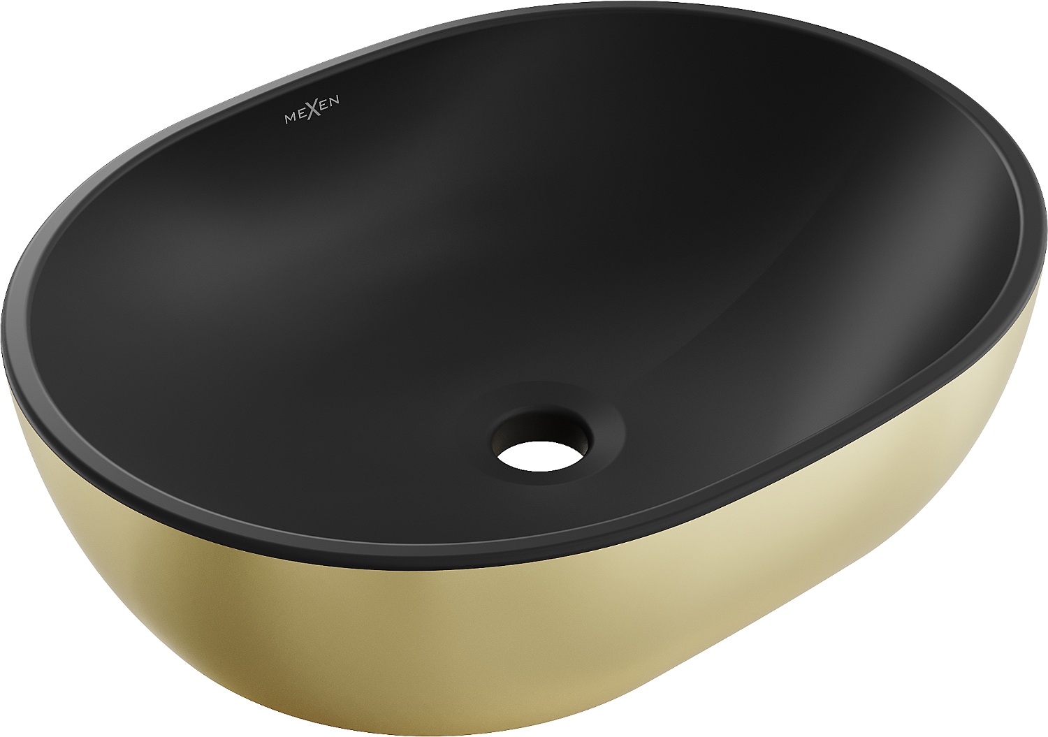 Mexen Viki е елегантна мивка над плот с размери 48 x 35 см, в ефектна комбинация от черно мат и злато. Нейната оригинална, овална форма и бляскава повърхност придават модернизъм на банята. Изработена от висококачествена санитарна керамика, мивката осигурява дълготрайност и лесно почистване. Липсата на преливен отвор и отвор за батерия я прави идеална за минималистични аранжировки. Изберете Mexen Viki, за да донесете стил и функционалност в своето пространство.