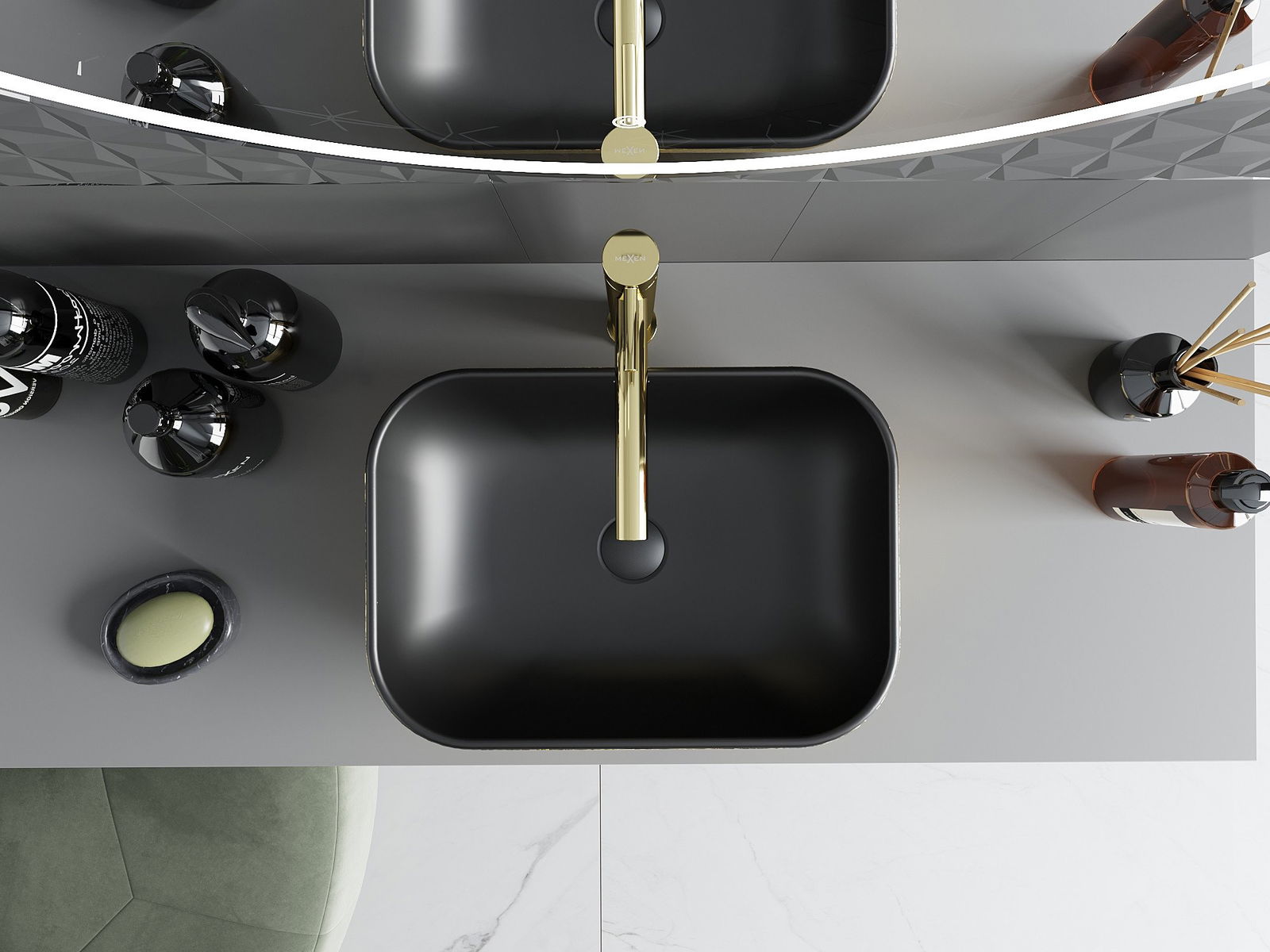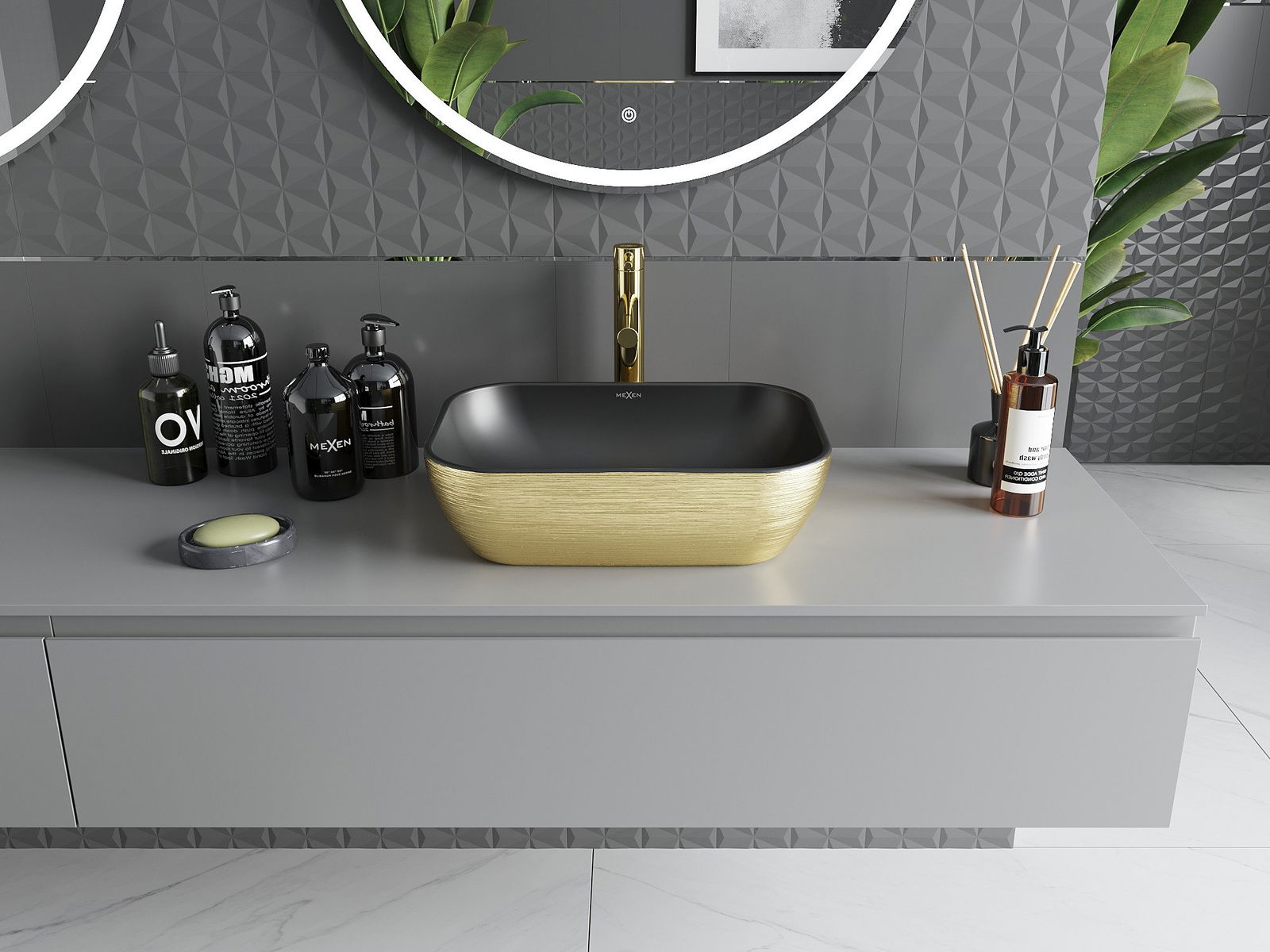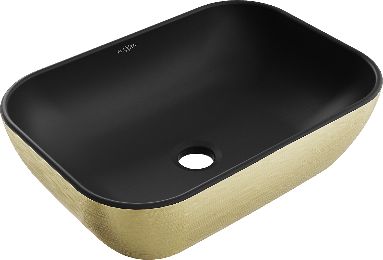 Mexen Rita мивка за плотов монтаж 45 x 32 см, черна мат/златен дизайн линии