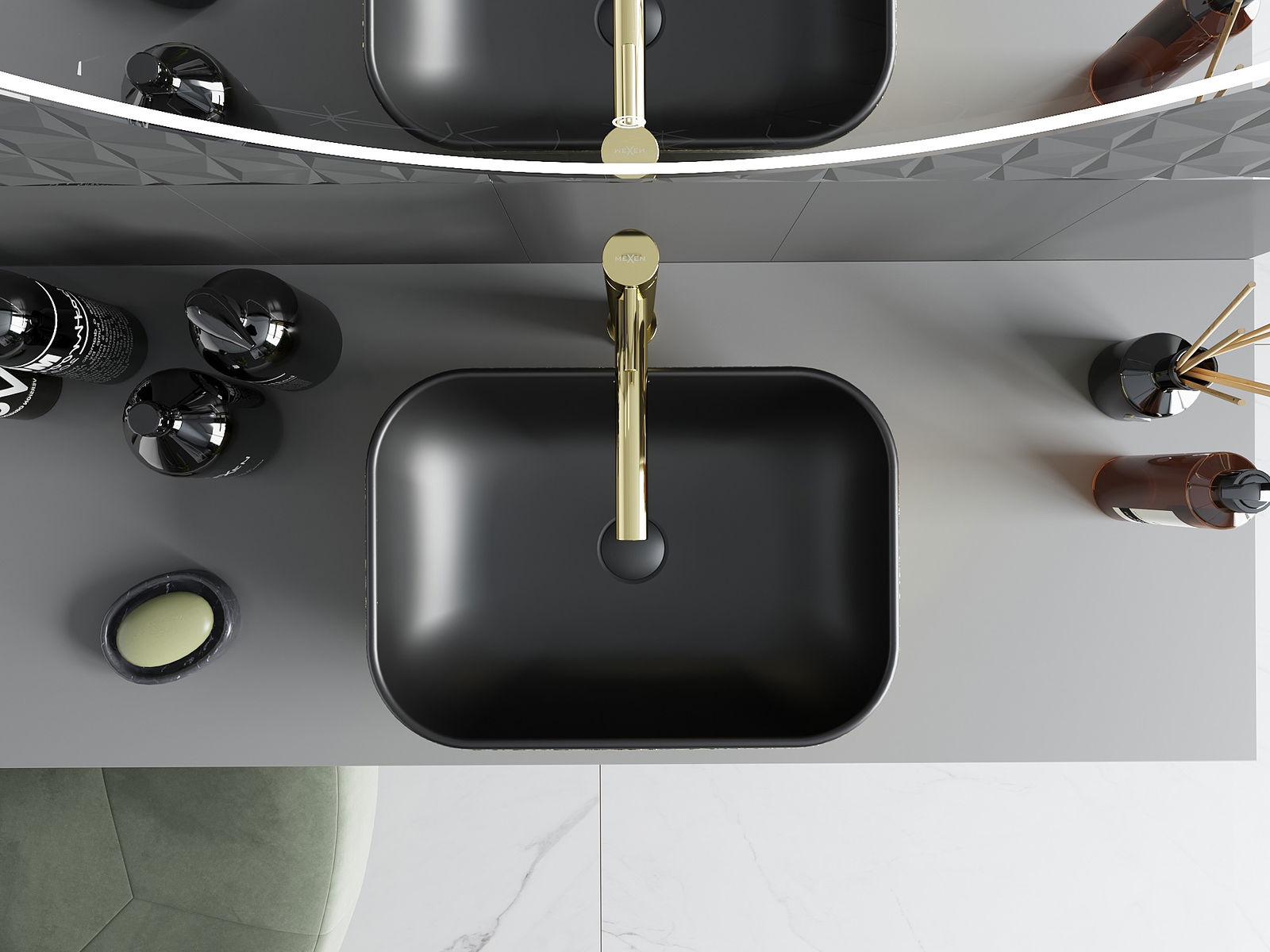 Матовата повърхност на керамиката перфектно подчертава естеството на цвета на продукта, придавайки му уникален и изразителен завършек. Фината структура на матовата керамика въвежда елегантност в банята, създавайки естетическо пространство.