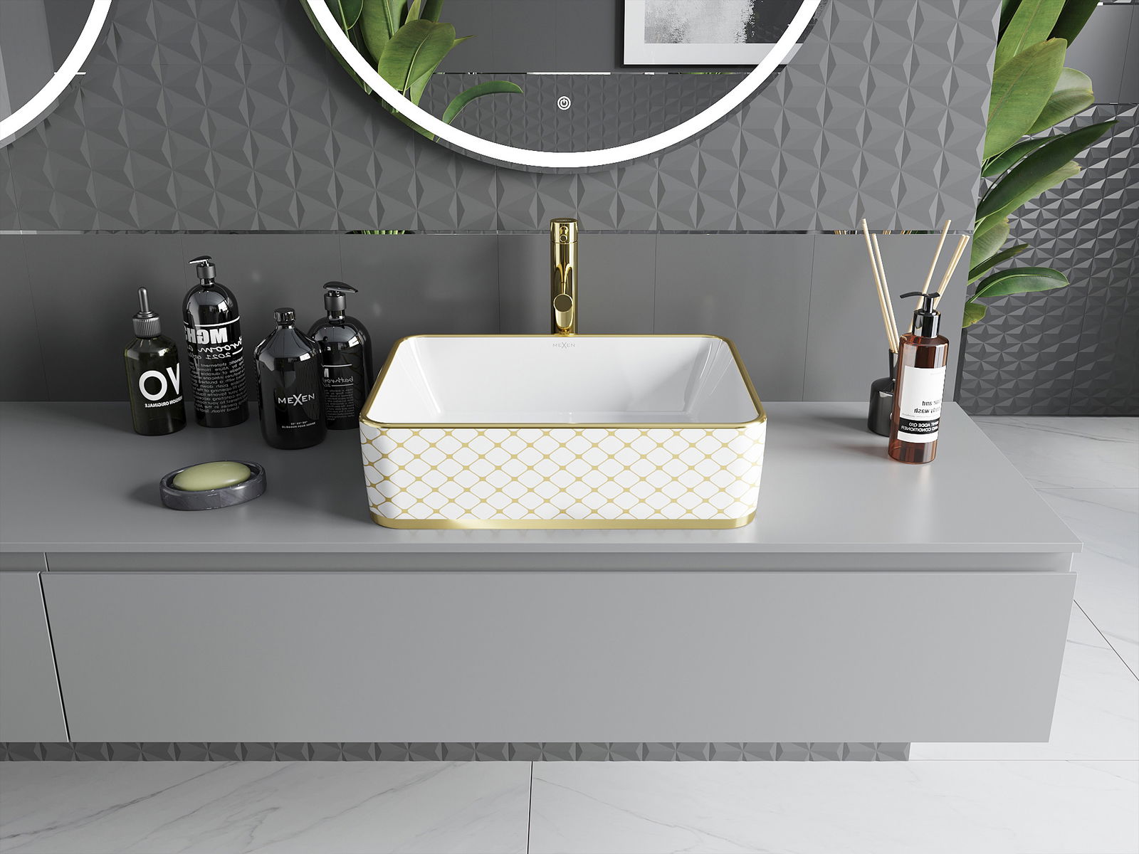 Цвят: Бял/Златист модел решетка
