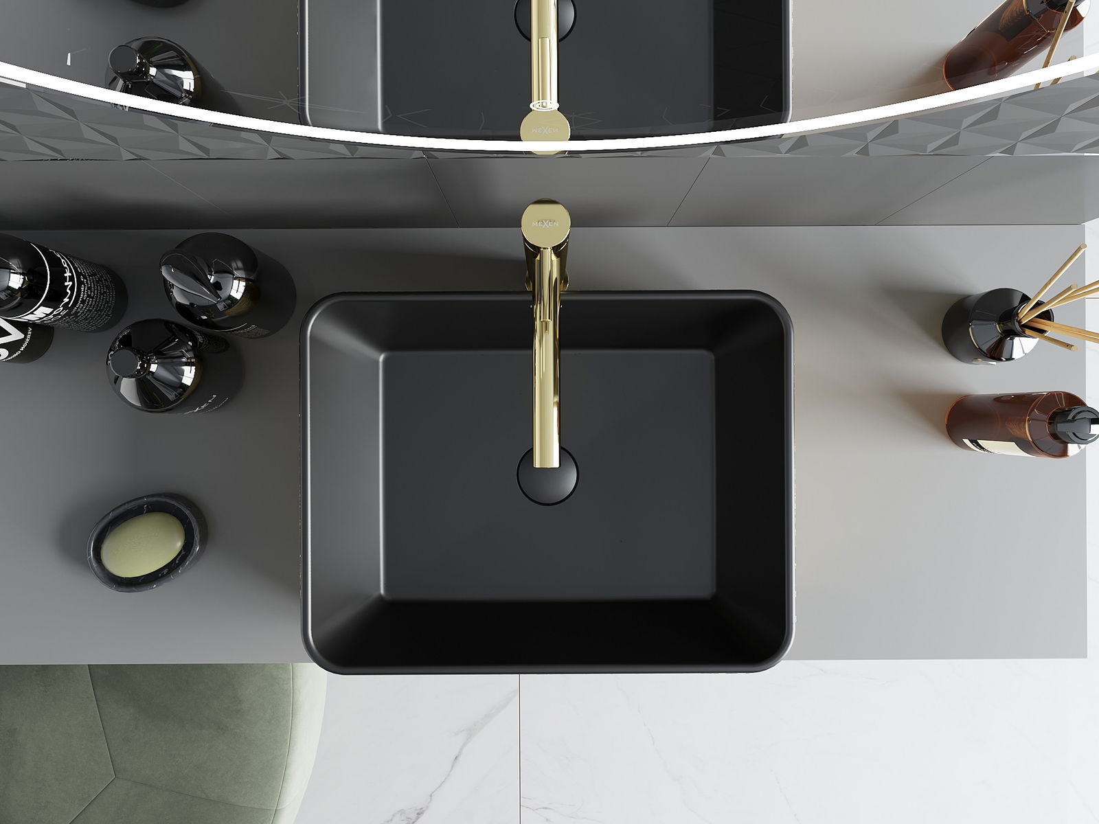 Матовата повърхност на керамиката перфектно подчертава естеството на цвета на продукта, придавайки му уникален и изразителен завършек. Фината структура на матовата керамика въвежда елегантност в банята, създавайки естетическо пространство.