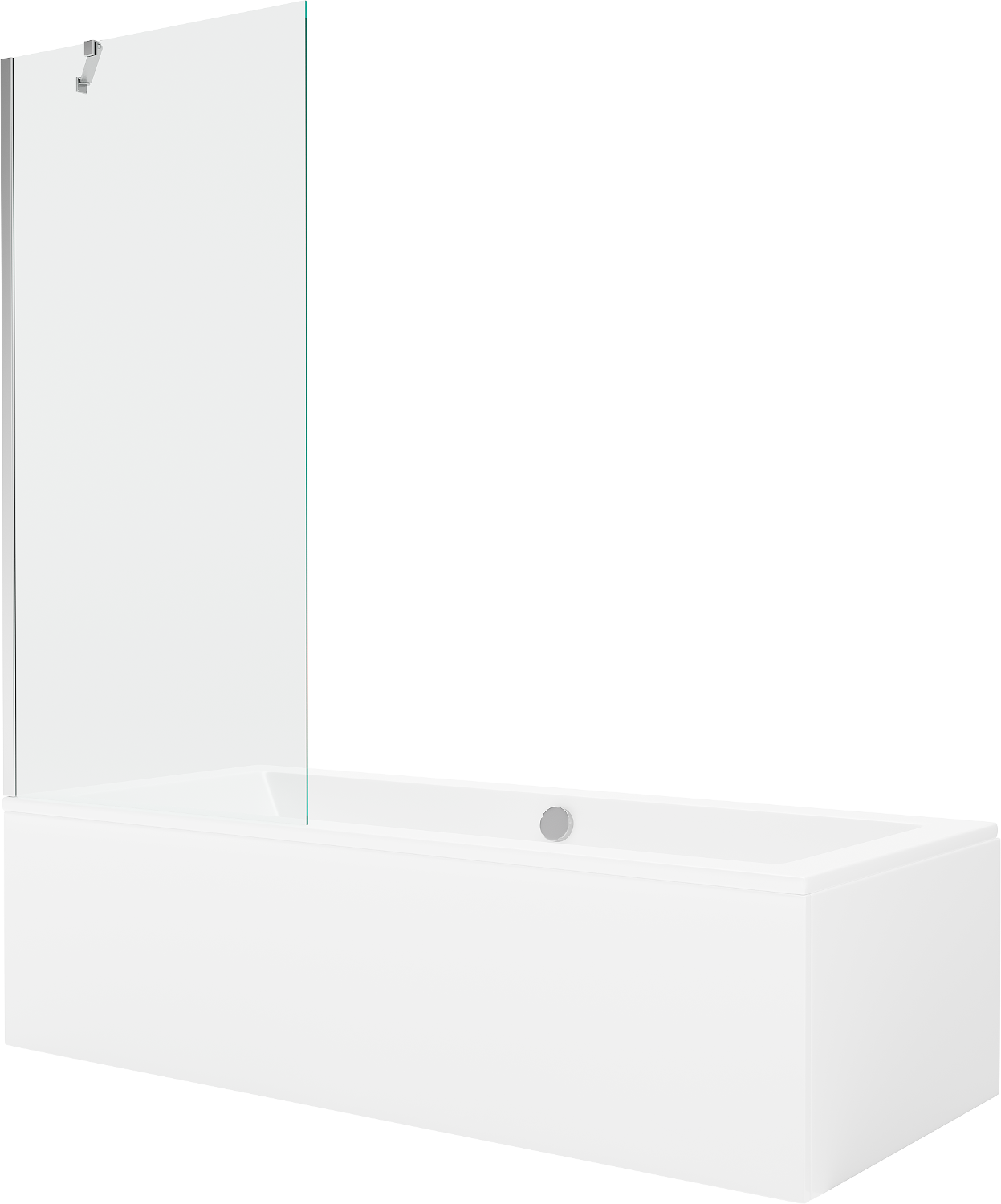 Mexen Cube правоъгълна вана 170 x 80 см с облицовка и параван с 1 крило 80 см, прозрачен, хром - 550517080X9508000001