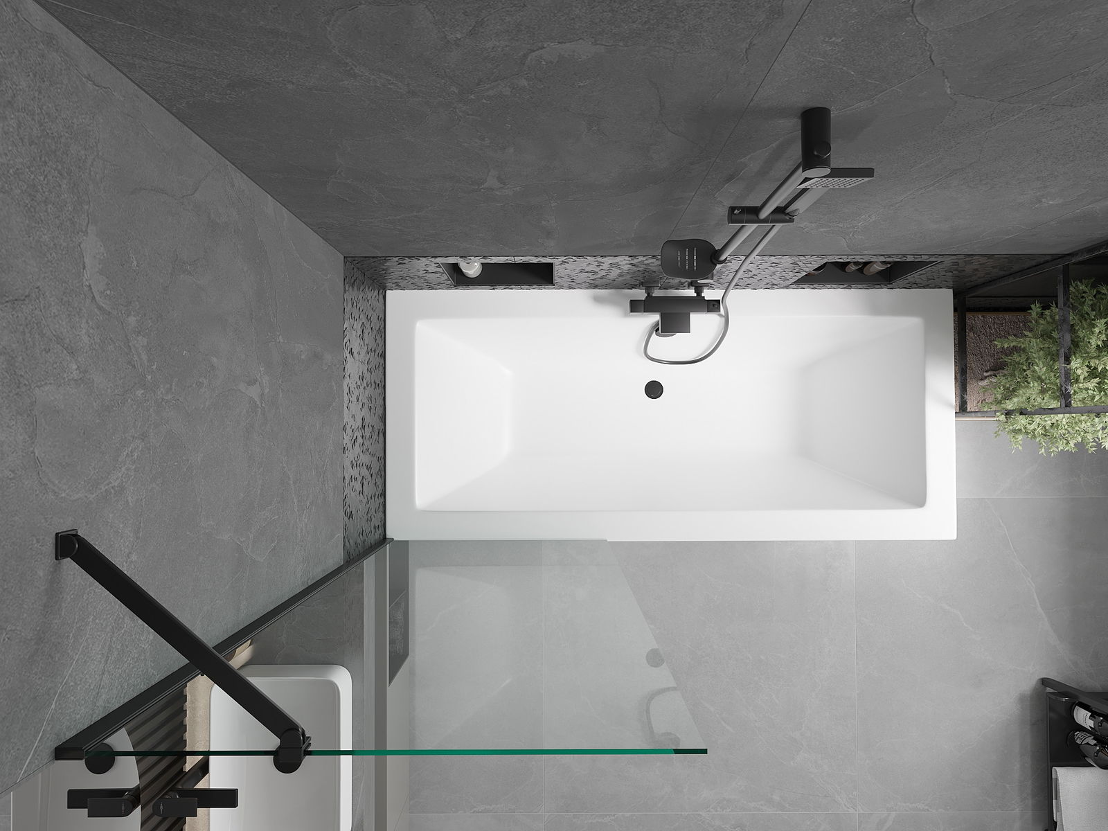 Mexen Cube правоъгълна вана 180 x 80 см с облицовка и 1-крилен параван 70 см, прозрачен, черен - 550518080X9507000070