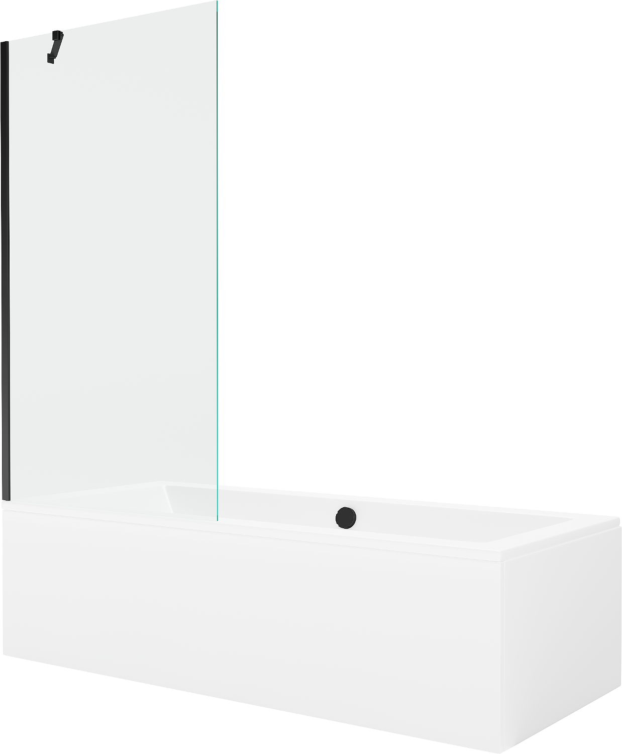 Mexen Cube правоъгълна вана 180 x 80 см с облицовка и еднокрилен параван 90 см, прозрачен, черен - 550518080X9509000070