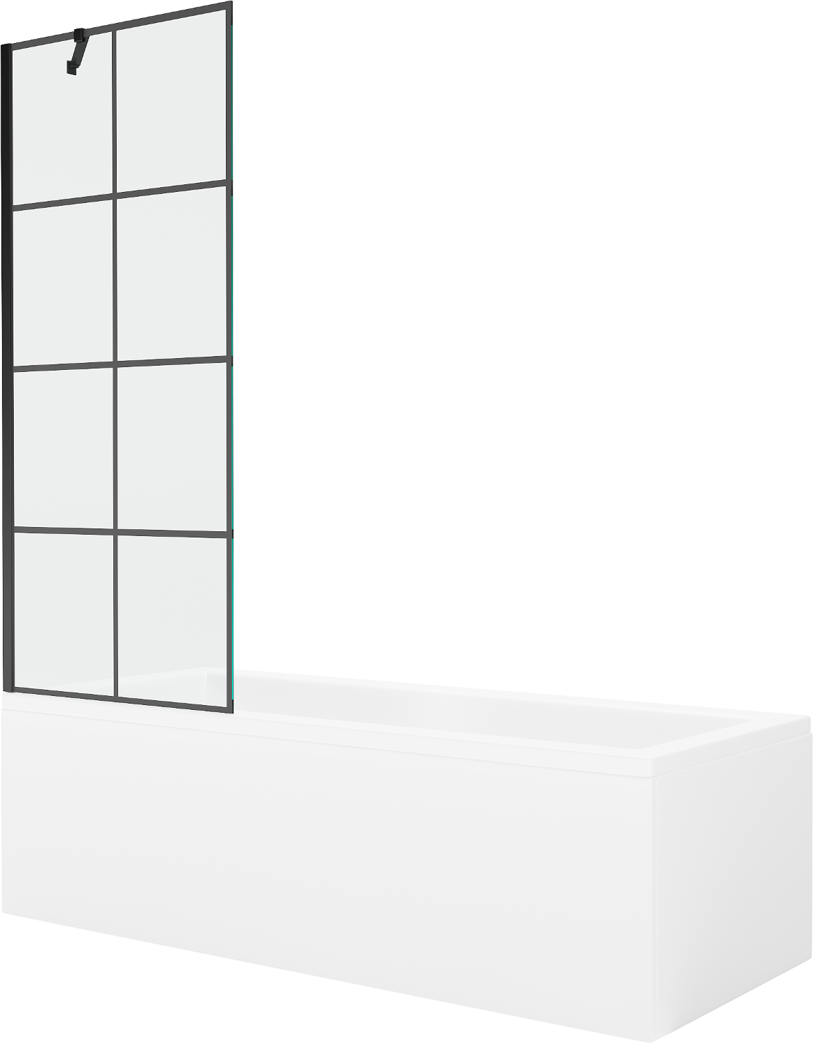 Mexen Cubik правоъгълна вана 150 x 70 см с корпус и 1-крилен параван 70 см, черен мотив - 550315070X9507007077