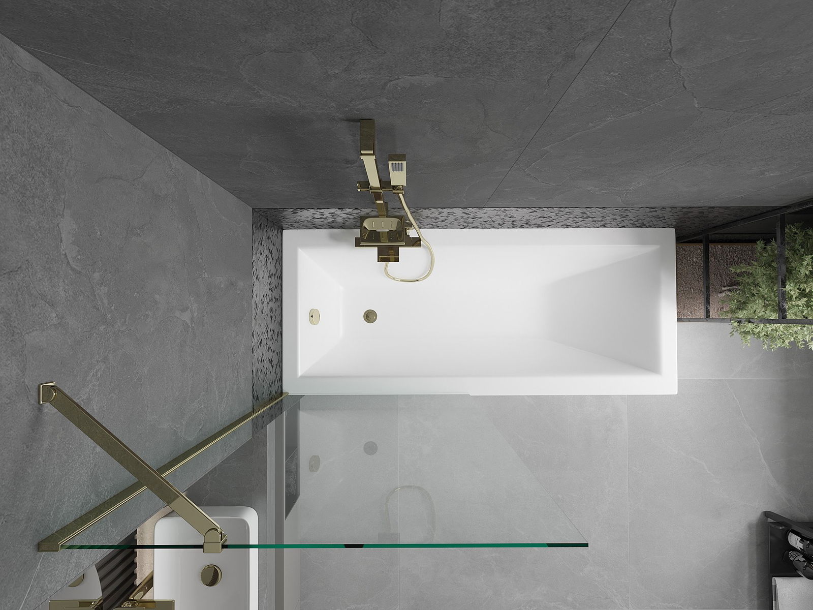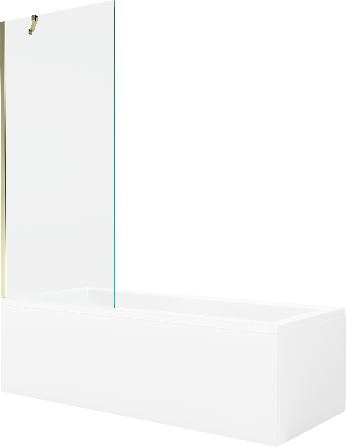 Mexen Cubik правоъгълна вана 160 x 70 см с обшивка и параван с едно крило 80 см, прозрачен, златен - 550316070X9508000050