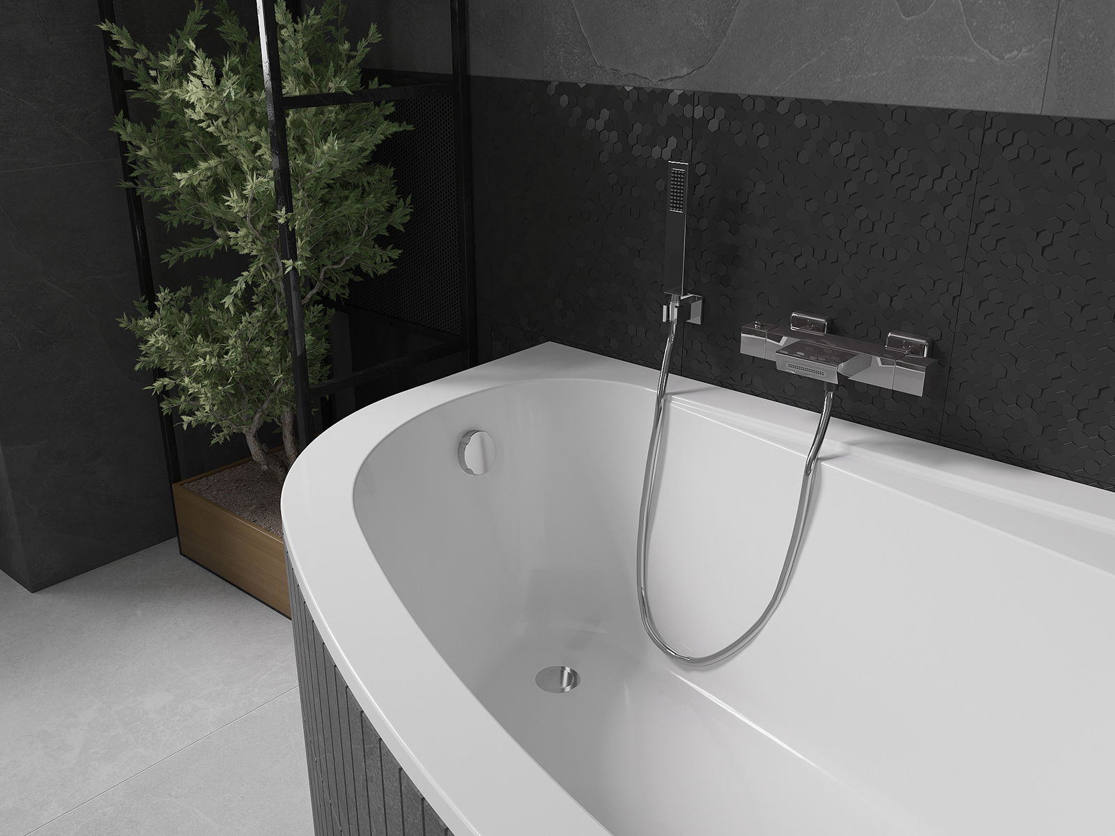 Автоматичната вана е включена в комплекта. Той има копче, с което можем да отворим или затворим дренажния клапан, без да копаем ръката. Хигиенно и безопасно решение, което дава пълен контрол.