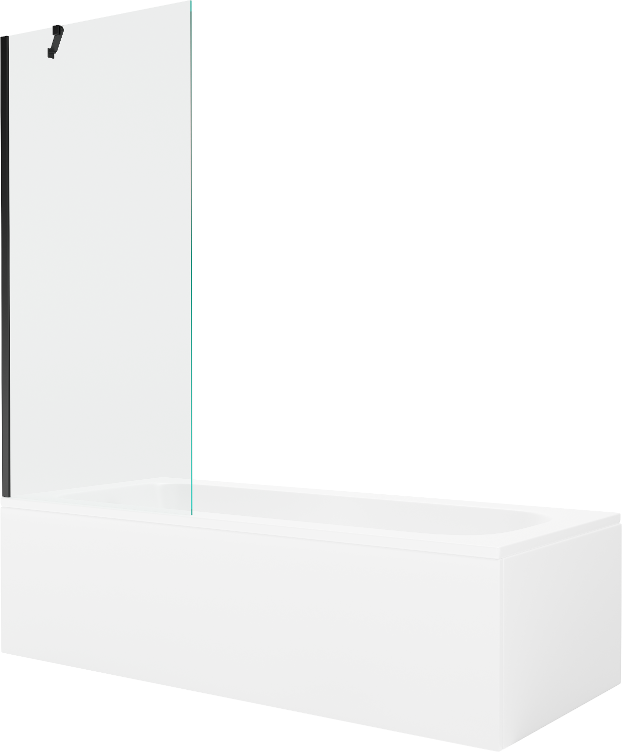 Mexen Vega правоъгълна вана 150 x 70 см с обшивка и еднокрилен параван 80 см, прозрачен, черен - 550115070X9508000070
