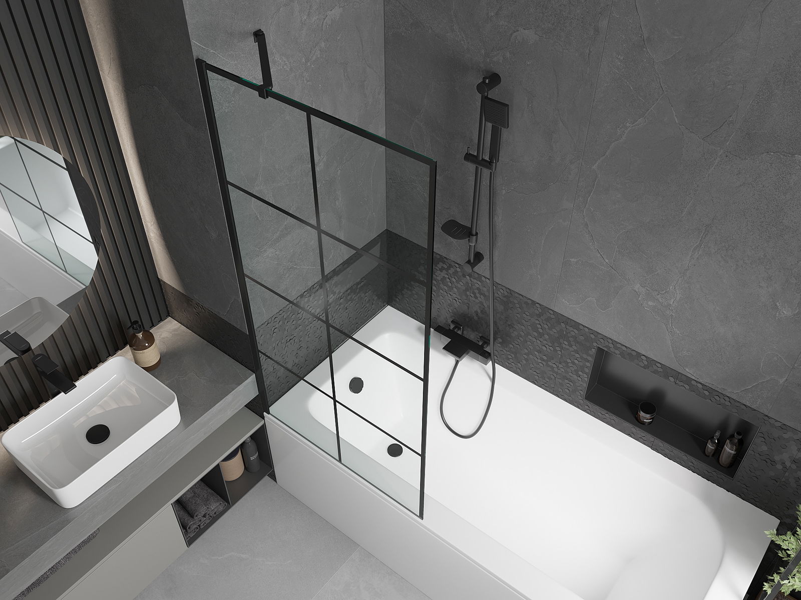 Mexen Vega правоъгълна вана 150 x 70 см с обшивка и 1-крилен параван 80 см, черен дизайн - 550115070X9508007077