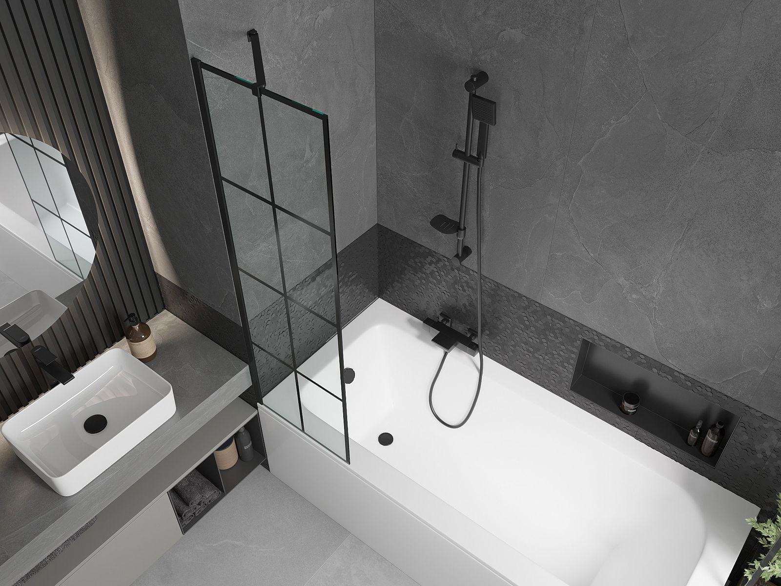 Mexen Vega правоъгълна вана 170 x 70 см с корпус и 1-крилен параван 50 см, черен