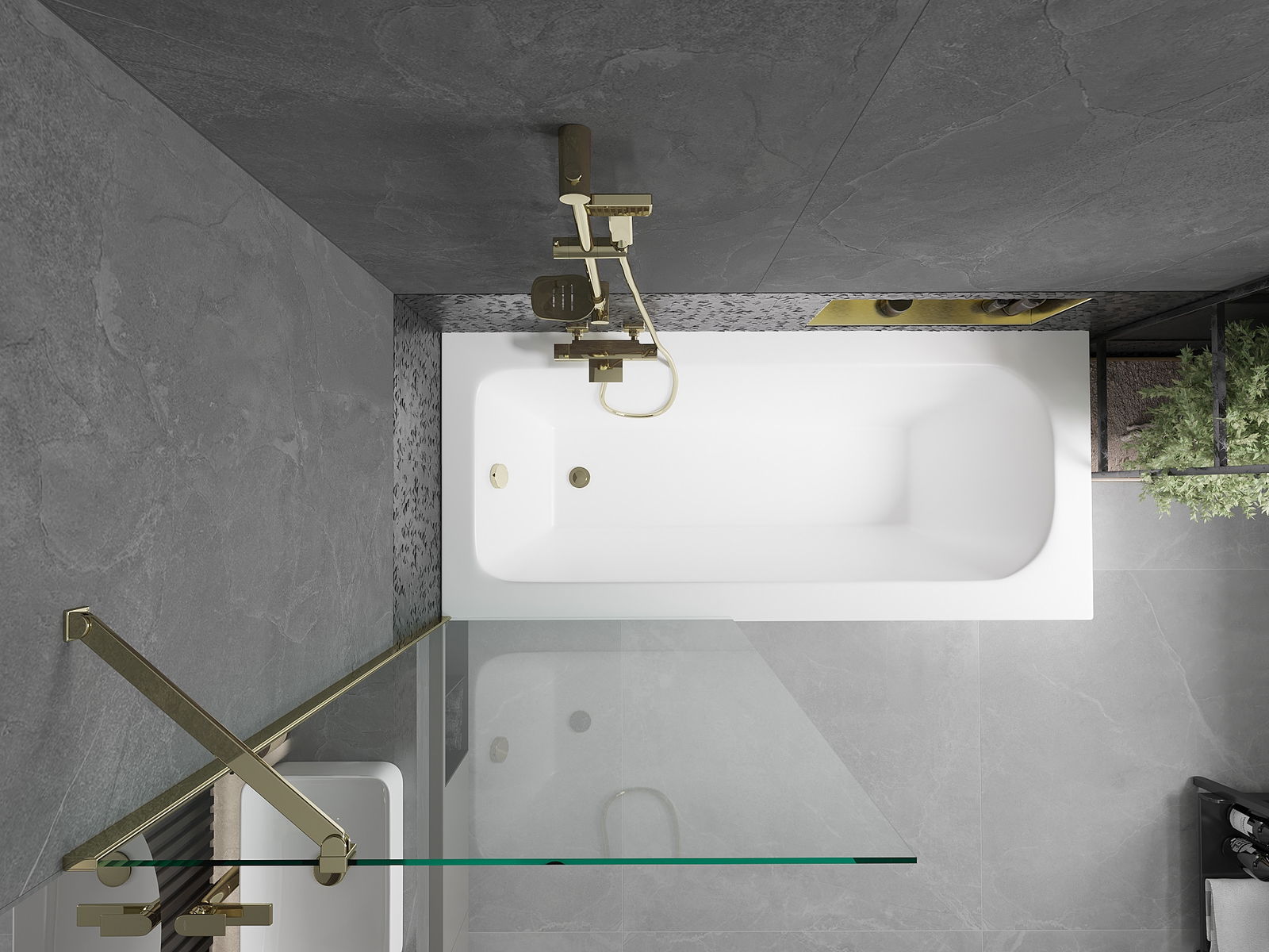 Mexen Vega правоъгълна вана 180 x 80 см с корпус и 1-крило параван 80 см, прозрачна, златна - 550118080X9508000050