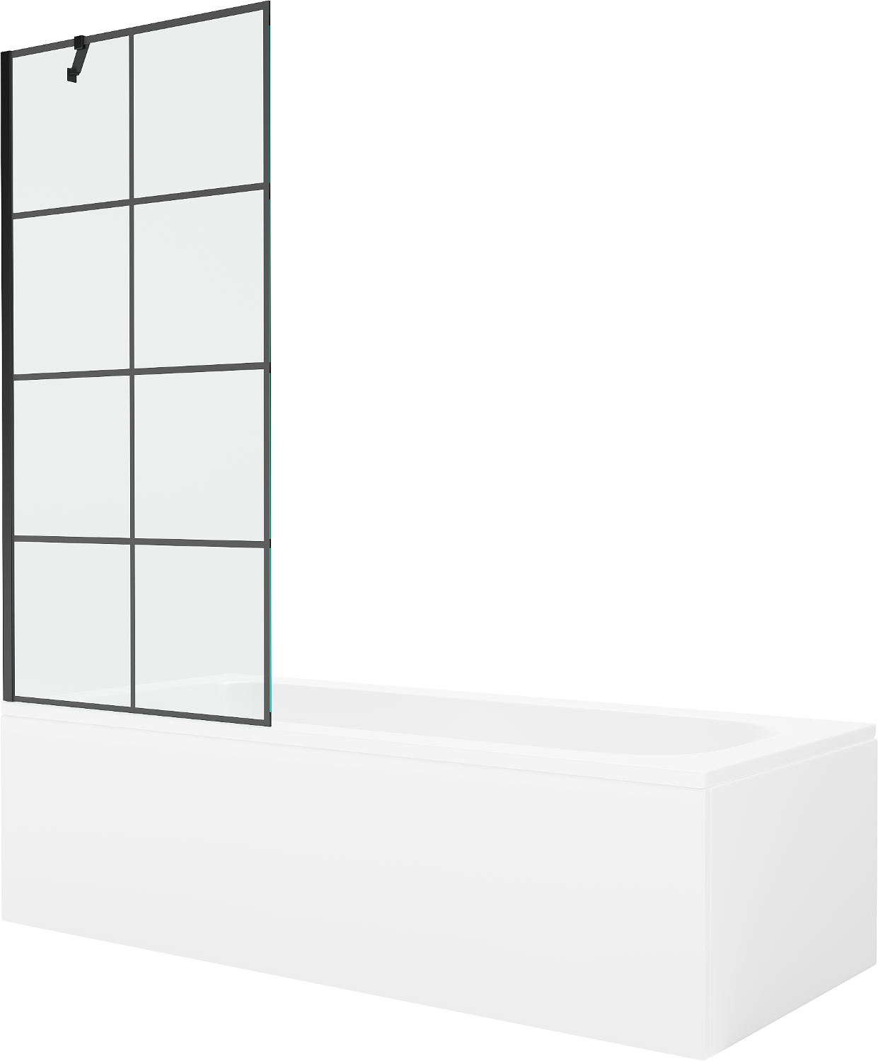 Mexen Vega правоъгълна вана 180 x 80 см с обшивка и 1-крило параван 80 см, черен мотив - 550118080X9508007077