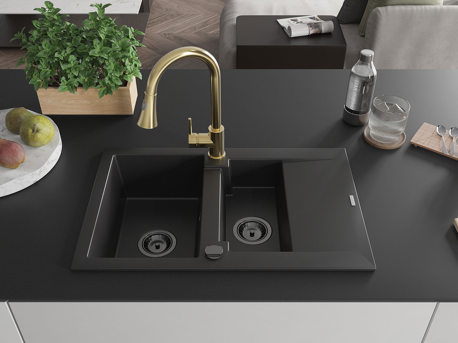 Мивката е направена от висококачествен гранит. Това е елегантно и най -вече практично допълнение към всяка кухня, независимо от нейния стил. Висококачествената и гранитна издръжливост осигуряват много години употреба.