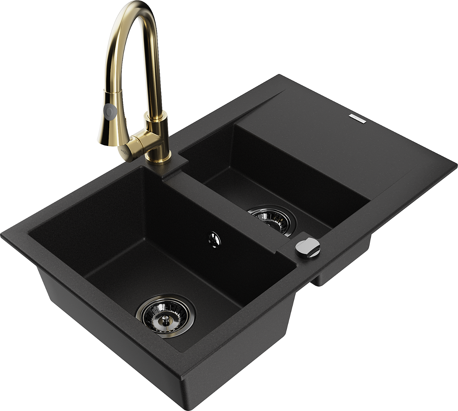 Mexen Gaspar гранитна мивка 1,5-камерна с отцедник и кухненски смесител Elia, черен - 6507-77-670101-50-B